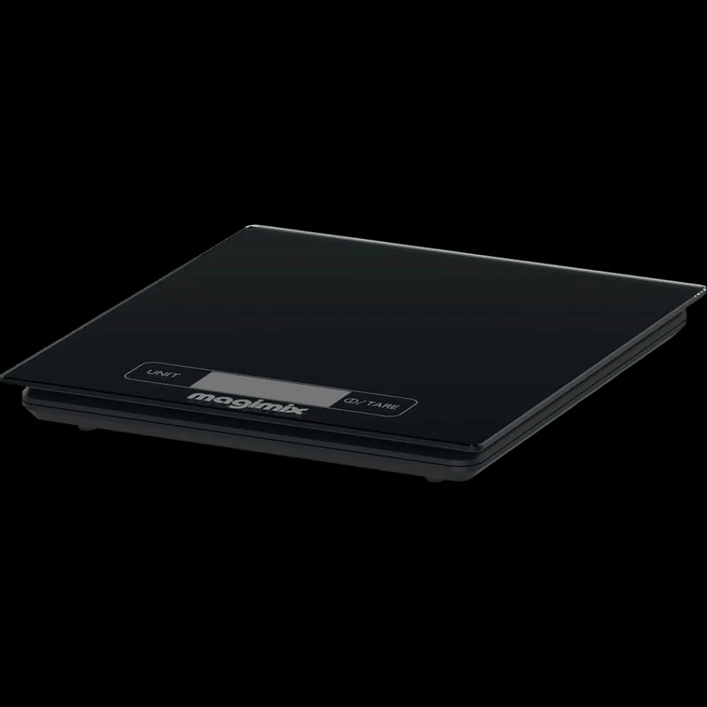 Køkkenvægt med sort glasplade og base af plast, LCD-display og touch-knapper. Vejer fra 2 g til 10 kg med intervaller på 1 g. Mulighed for at veje i enhederne g/ml/kg/lb/oz. Automatisk nulstilling af tara og automatisk slukning efter to minutter. Overfladen måler 23 x 21 cm. Bruger 2 x 1,5V AAA-batterier, som medfølger. 3 års garanti.