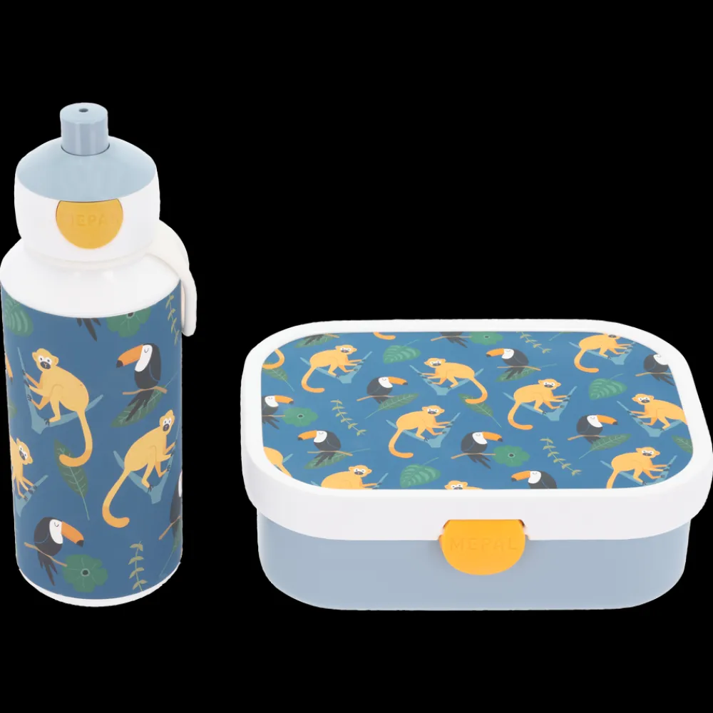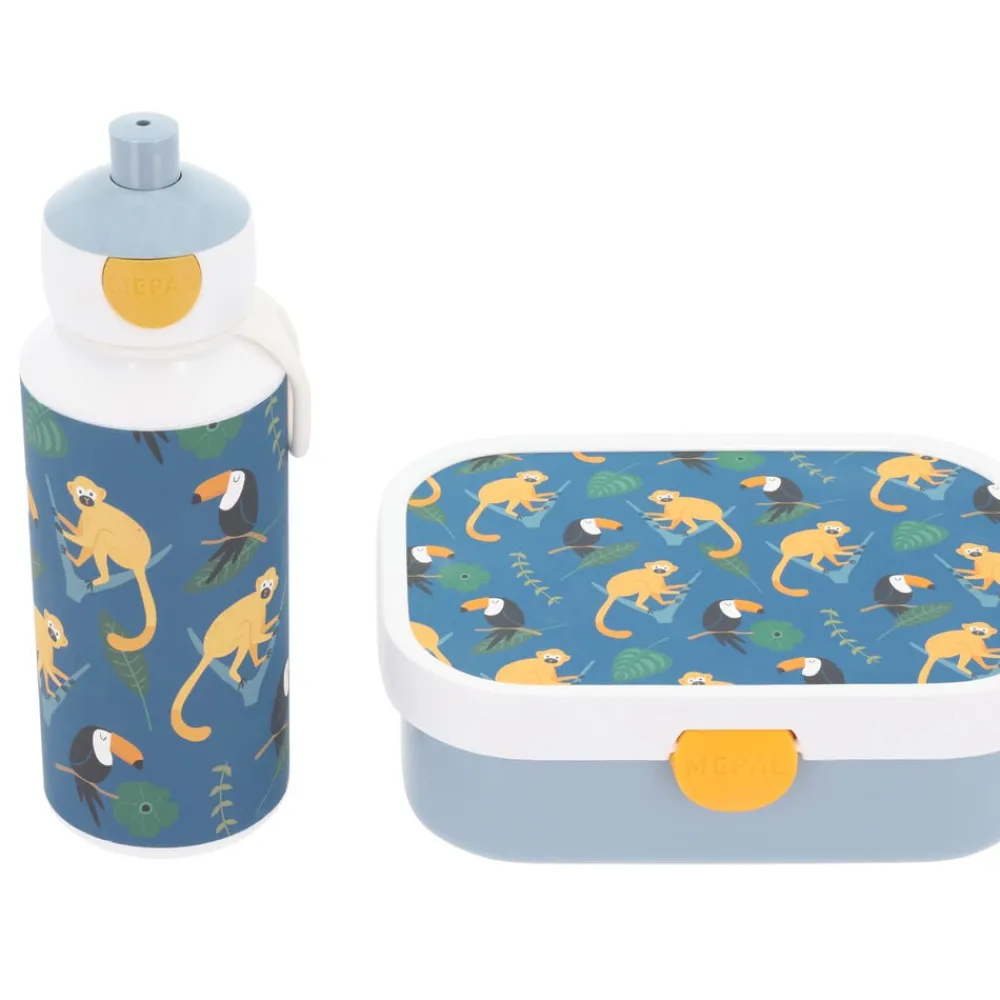 Mepal Campus sæt er et godt og praktisk valg til børn i skolealderen. Sættet består af 2 dele: en madkasse med en lille gaffel og en aftagelig indsats med to små rum samt en drikkeflaske på 400 ml med et smart pop-up system med mundstykke, der nemt udløses ved tryk på en knap. Velegnet til opvaskemaskine.