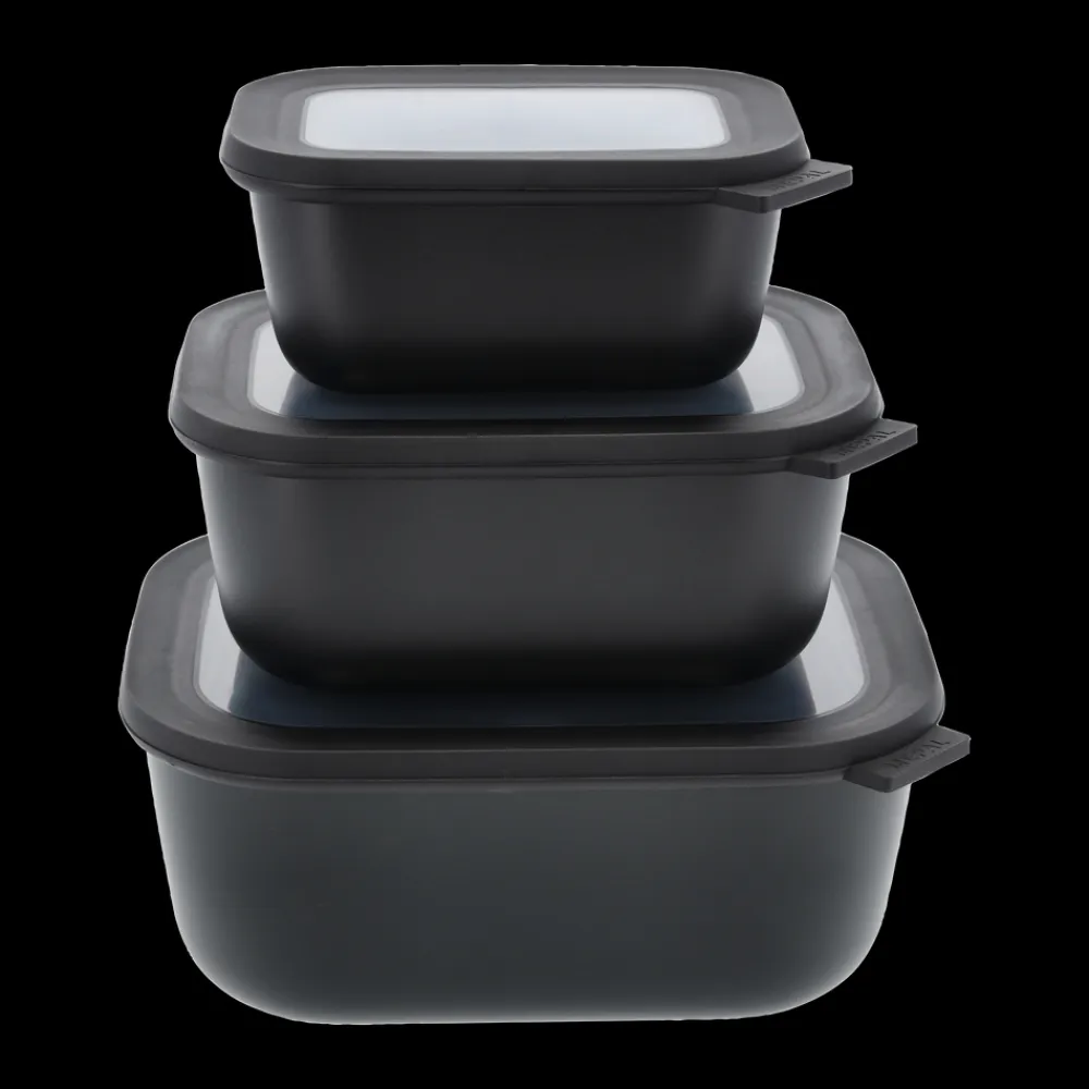 Mepal Cirqula opbevarings- og serveringsskål – rummelig og praktisk i kølige, nordiske farvetoner. Samtidig er skålen dekorativ og velegnet til servering. Sæt bestående af 750 ml, 1500 ml og 3000 ml.