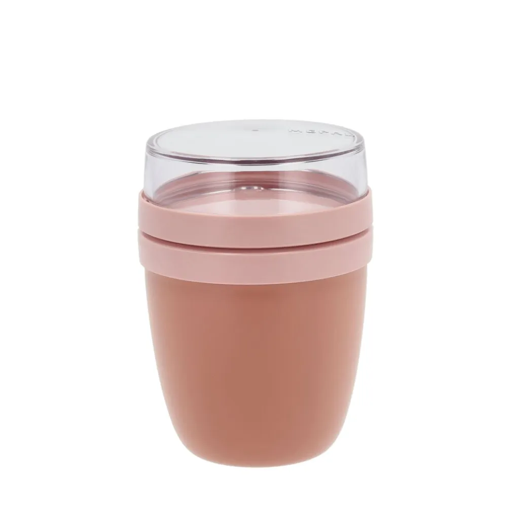 Mepal Ellipse frokostbæger Mini – til salat, yoghurt og lignende. 300 ml bæger med 120 ml topbeholder til müsli, dressing osv. – lige til at tage med. Ideel størrelse til snacks til børn. 100 % tæt og velegnet til mikroovn og opvaskemaskine.