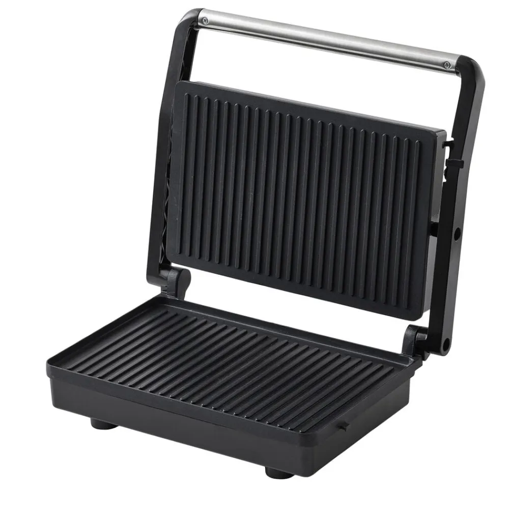 Lille paninigrill med en grillflade på 18 x 28 cm. Perfekt til brød og til at varme store stykker grøntsager eller en lækker sandwich. Grillpladen har non-stick belægning, og låget er med vippehængsler, så det ligger vandret, selv ovenpå høje fødevarer.