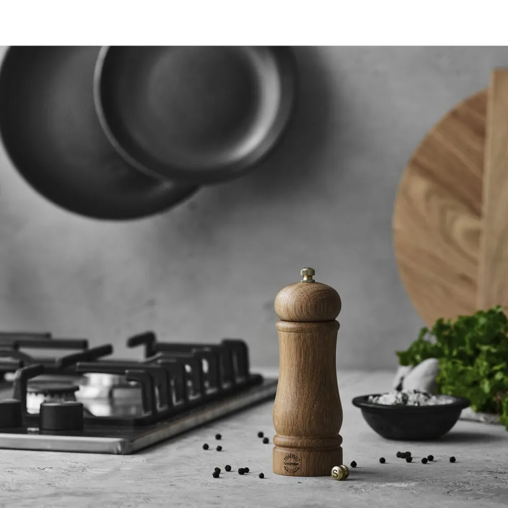 Kværn 16 cm i smukt, olieret egetræ.