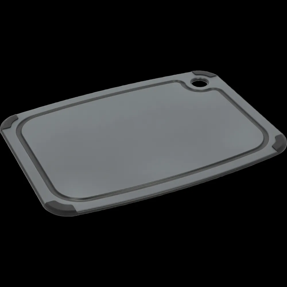 Skærebræt med praktiske silikonekanter, som sørger for, at brættet ligger stabilt på bordet, mens du hakker og skærer. Det kan anvendes på begge sider – den ene side har en bred saftrille til saftige madvarer og en glat side til alt det andet. Velegnet til opvaskemaskine.