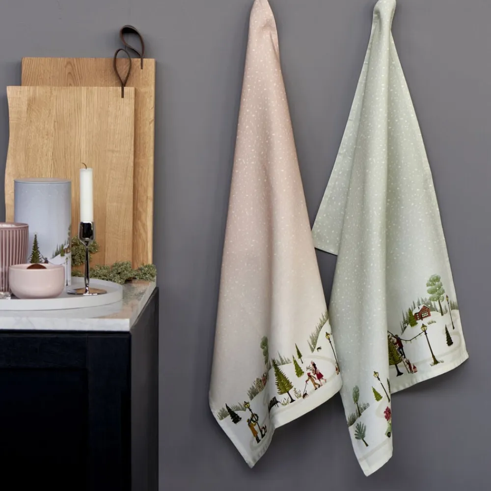 Viskestykke 50 x 70 cm i 100 % ren ny bomuld med eventyrlige vintermotiver. Serien Vinter er skabt i samarbejde med designer Dorthe Mathiesen. Hendes motiver med den karakteristiske grafiske streg og lyse, nordiske pastelfarver afspejler stemningen i de hyggelige vintermåneder og fortæller historier fra de små samfund om leg i sneen, stemningsfulde vinterlandskaber og samvær med familie og venner, som beskueren kan hoppe ind i og selv bygge videre på.