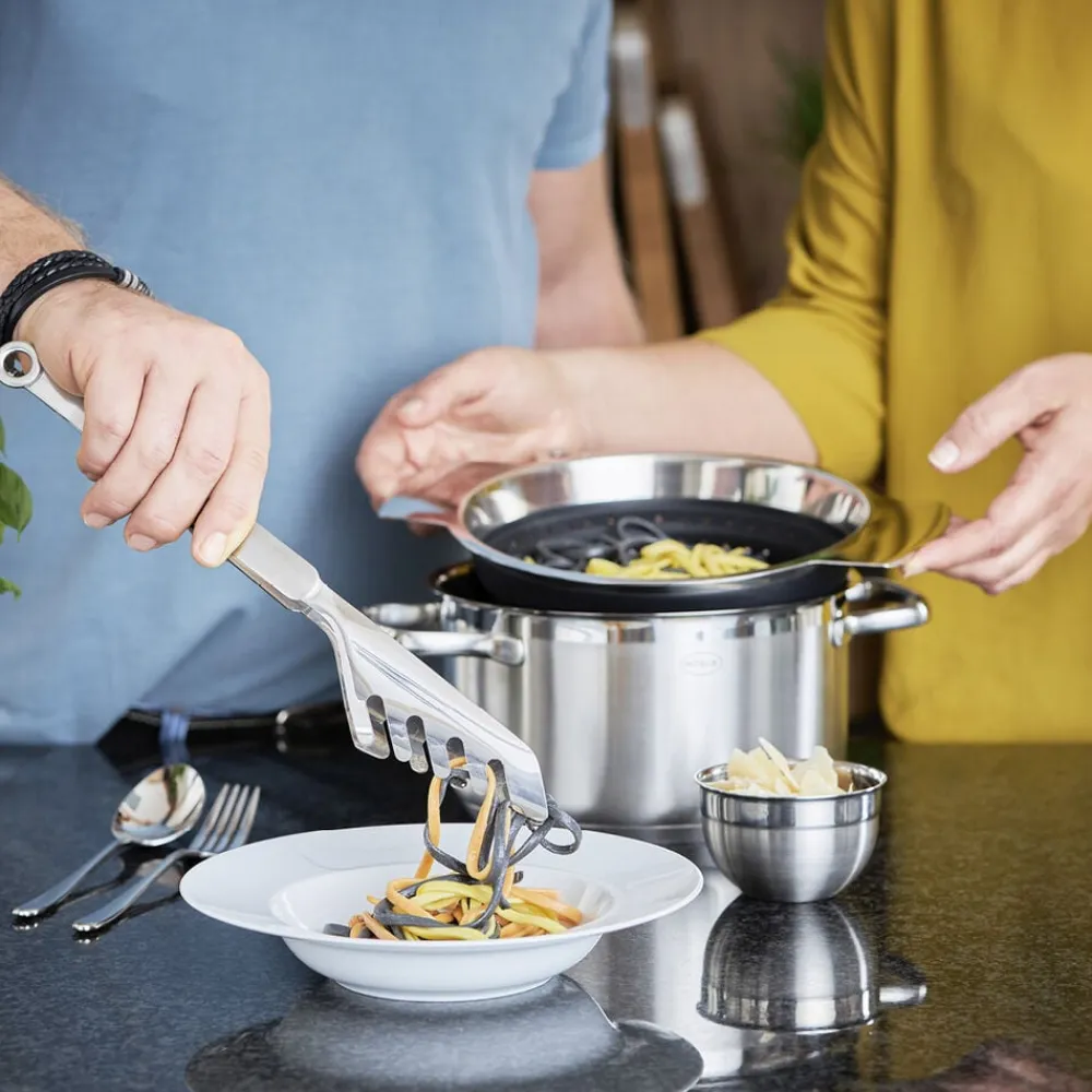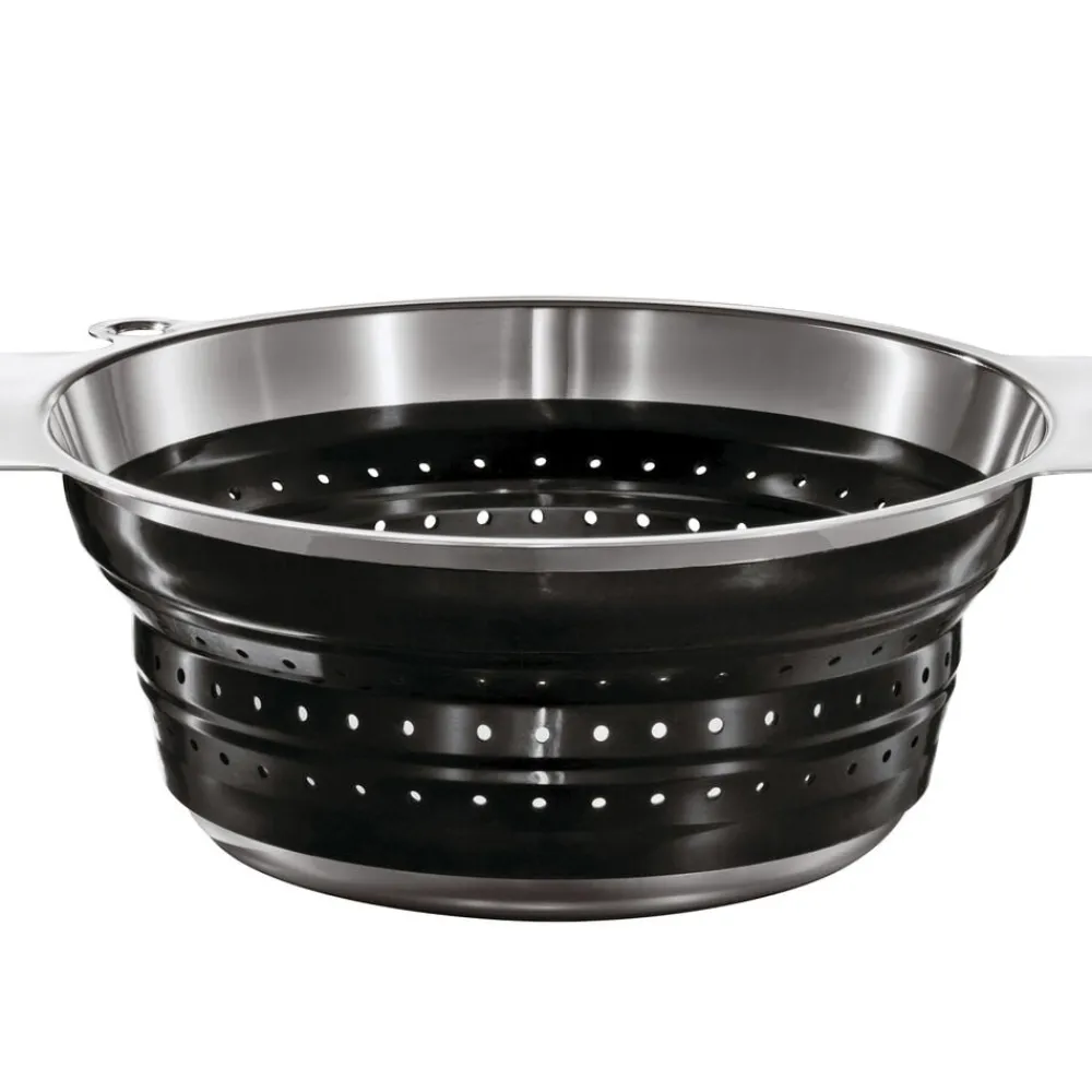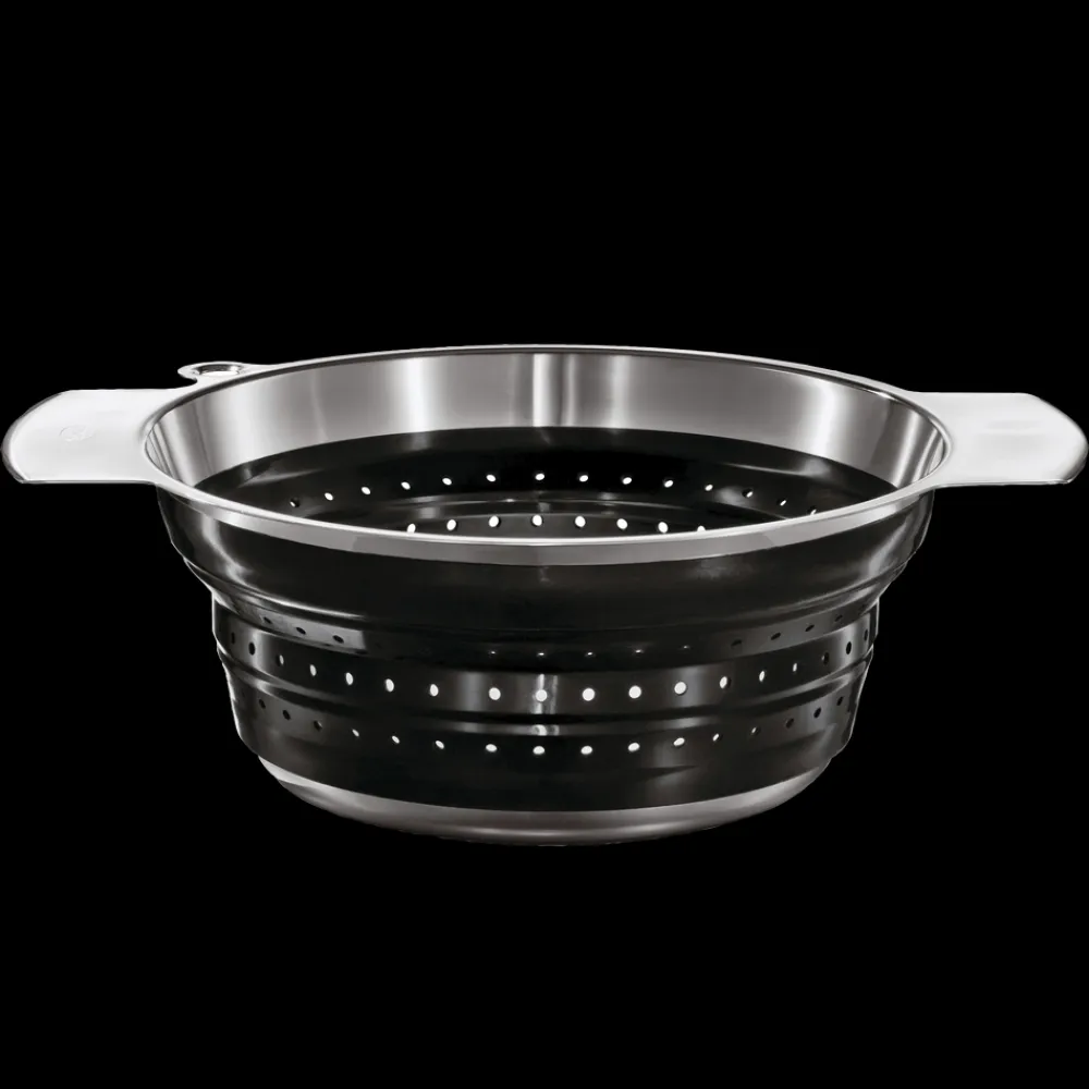 RÖSLE dørslag til grøntsager, pasta og meget andet. De mange små huller i bund og sider sikrer en hurtig og effektiv dræning. Dørslaget er designet til at stå stabilt på bordet, når det ikke er i brug. Sider af silikone gør det muligt at folde dørslaget til en højde på kun 4 cm, så du kan opbevare det pladsbesparende. Tåler opvaskemaskine