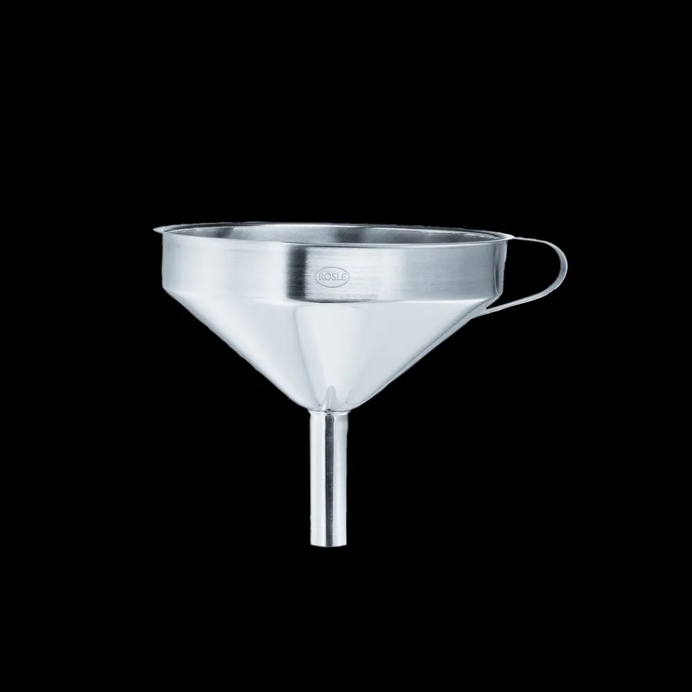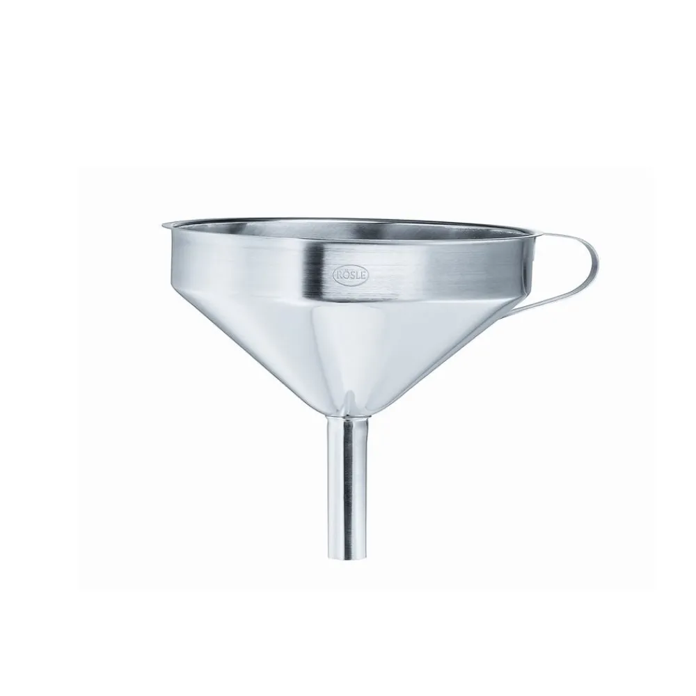 RÖSLE tragt med udtagelig si fremstillet i stærkt 18/10 rustfrit stål. Tåler opvaskemaskine.