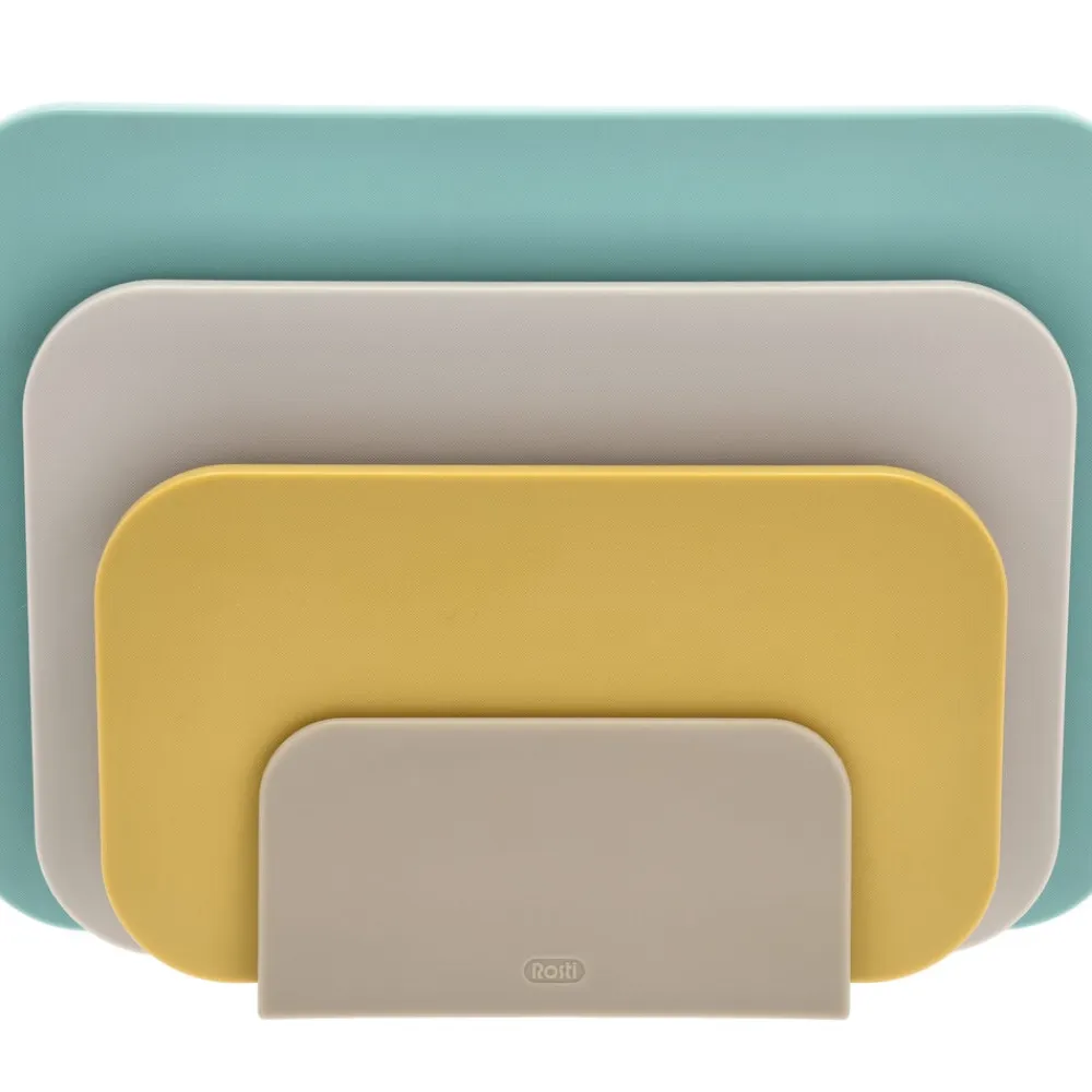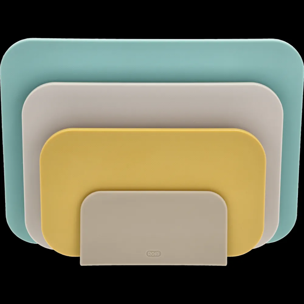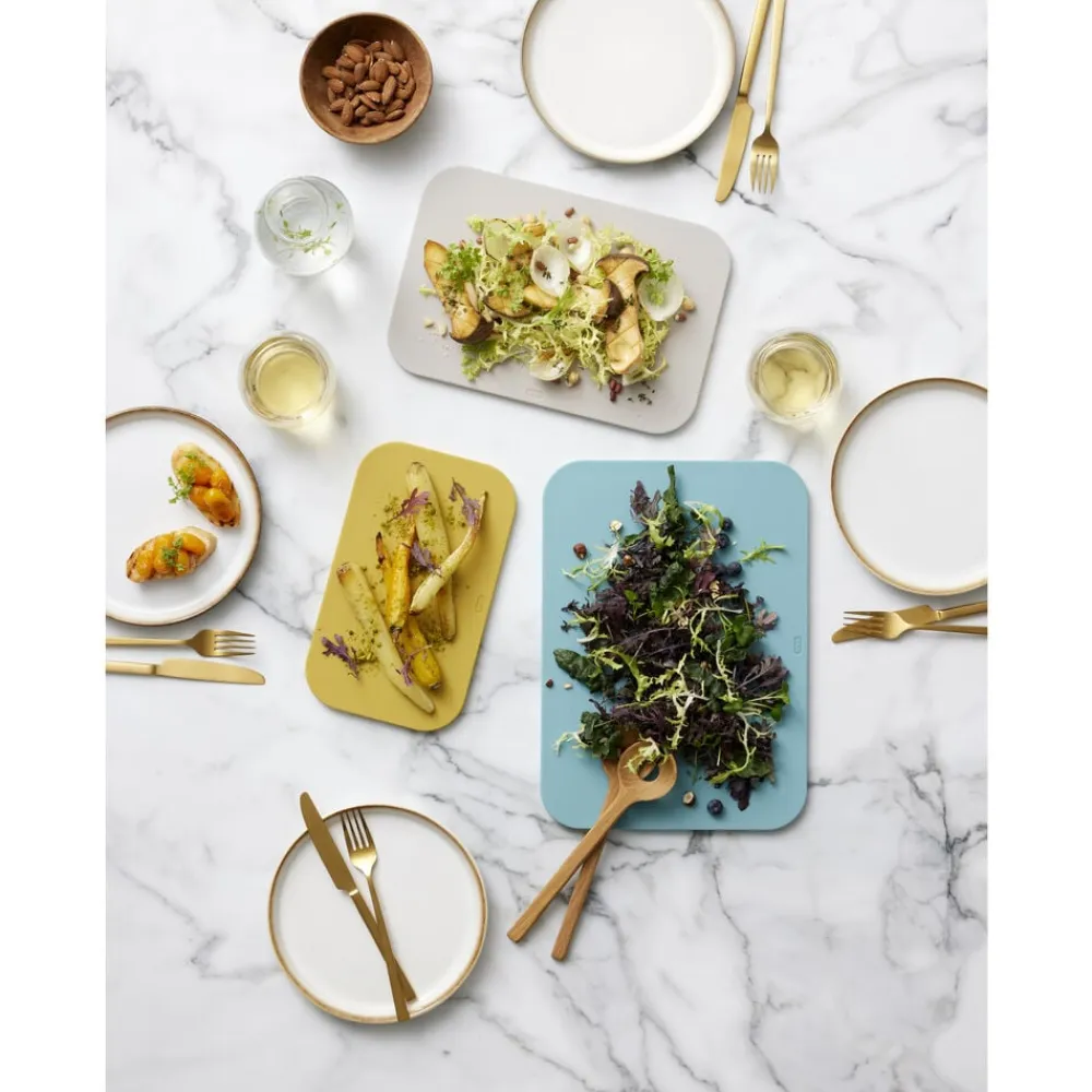 De tre størrelser er samme tykkelse og kan sagtens anvendes til servering og tages med ind på bordet til brød, pølse, oste og tapasanretninger med mere. Derfor er seriens fine farver valgt med grundig omtanke, og med sine venlige former bliver sættet et dekorativt supplement til din køkkenindretning.