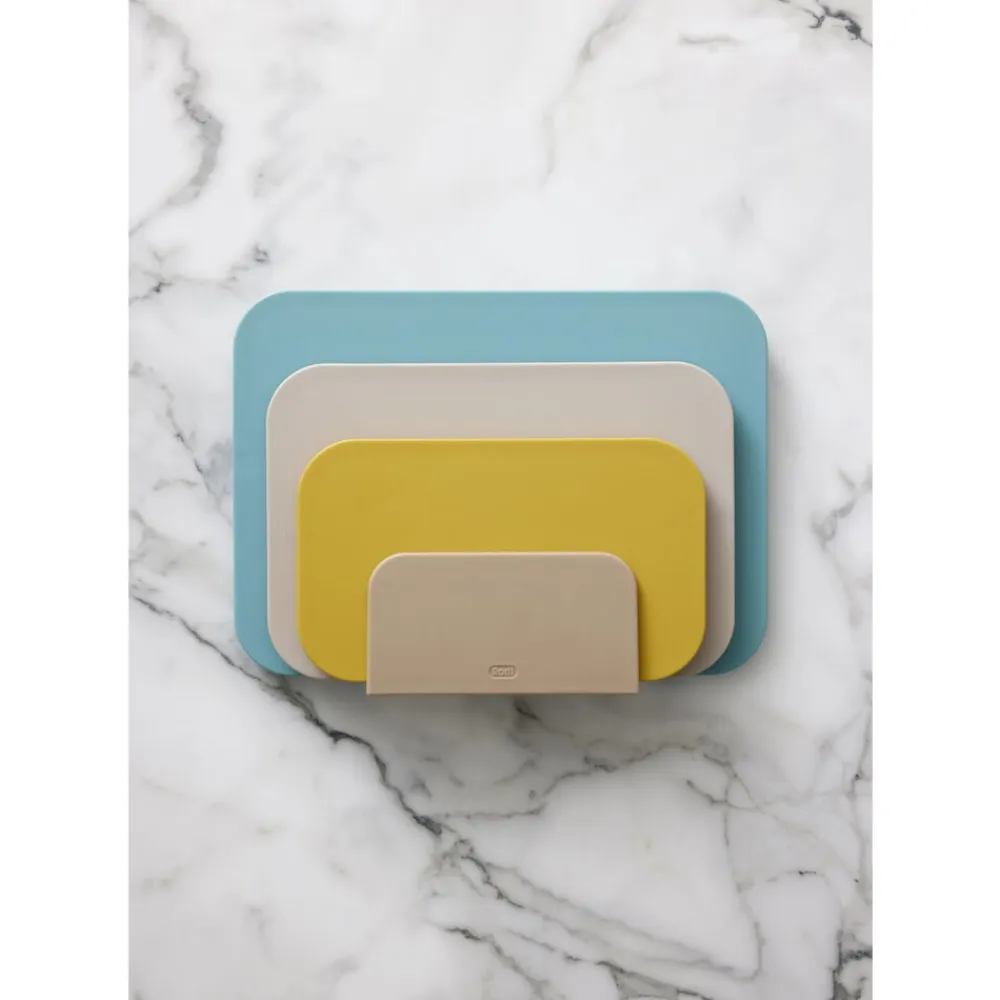 Choptima skærebrætter i størrelserne 26,5 x 16 cm, 30,5 x 20,5 cm og 35,5 x 25,5 cm og farverne curry, humus og nordic green.