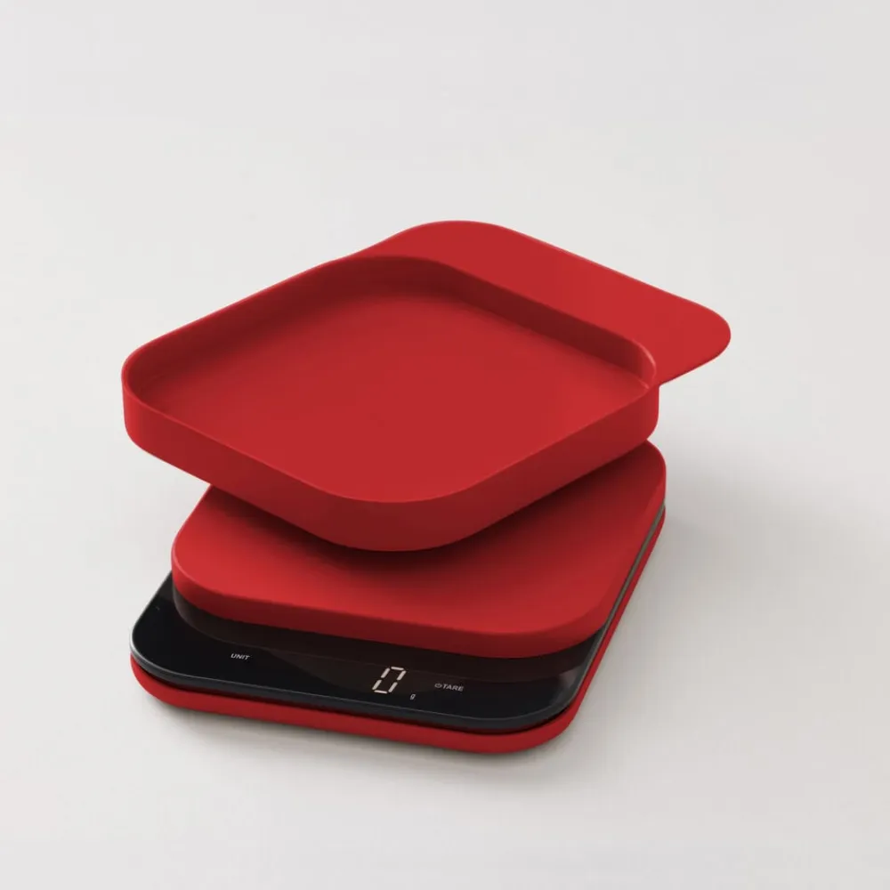Der kan skiftes mellem flere måleenheder, g, kg, oz, lb, ml, fl oz, og vægten har tarafunktion. Tændes manuelt og slukker automatisk. Fire L-formede silikonefødder i samme farve som vægten er placeret under bunden.