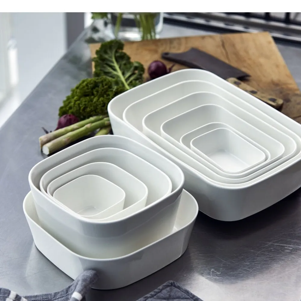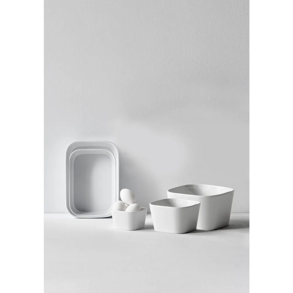 Ovnfast fad i hvidt porcelæn til det skandinaviske køkken. Fadet er fremstillet i forstærket porcelæn, der kan tåle ovntemperatur helt op til 350 grader. Den høje kant og praktiske form giver mange anvendelsesmuligheder. 12,5 x 9 x 4,5 cm.