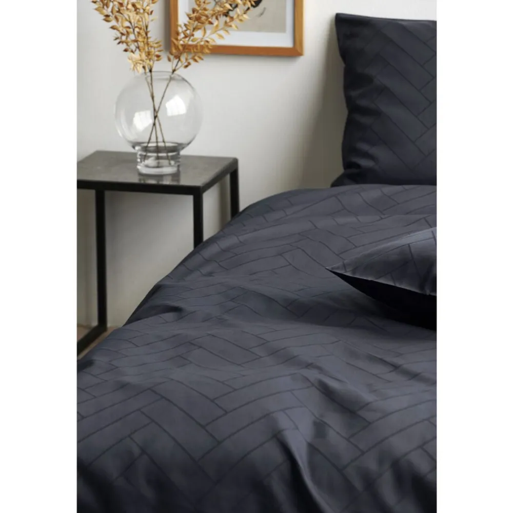 Sov i udsøgt damasksengetøj med Tiles-mønstret vævet ind i stoffet. Sengetøjets look vil få sengen til at føles ekstra luksuriøs. De fine bomuldsgarner og satinvævningen giver den særlige matte glans, der er meget populær.