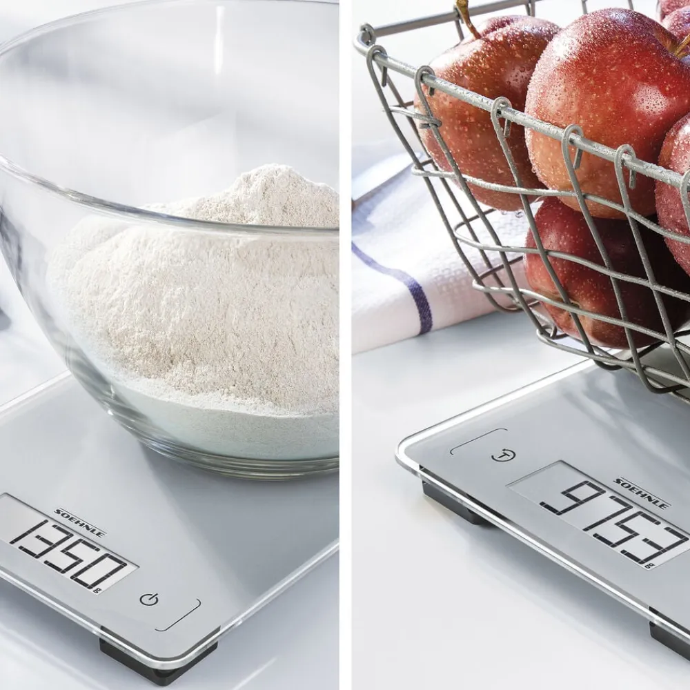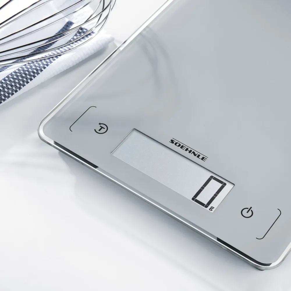 Alle ingredienser kan vejes separat med tarafunktionen i præcise 1 grams trin. Det ekstra store LCD-display er nemt at aflæse, og med sensor-touch-funktionen behøver du kun at trykke ganske let på kontrolpanelet. Vægten slukker automatisk. Det sparer energi, så de medfølgende batterier holder længere. Batterierne sidder i et børnesikkert batterirum.