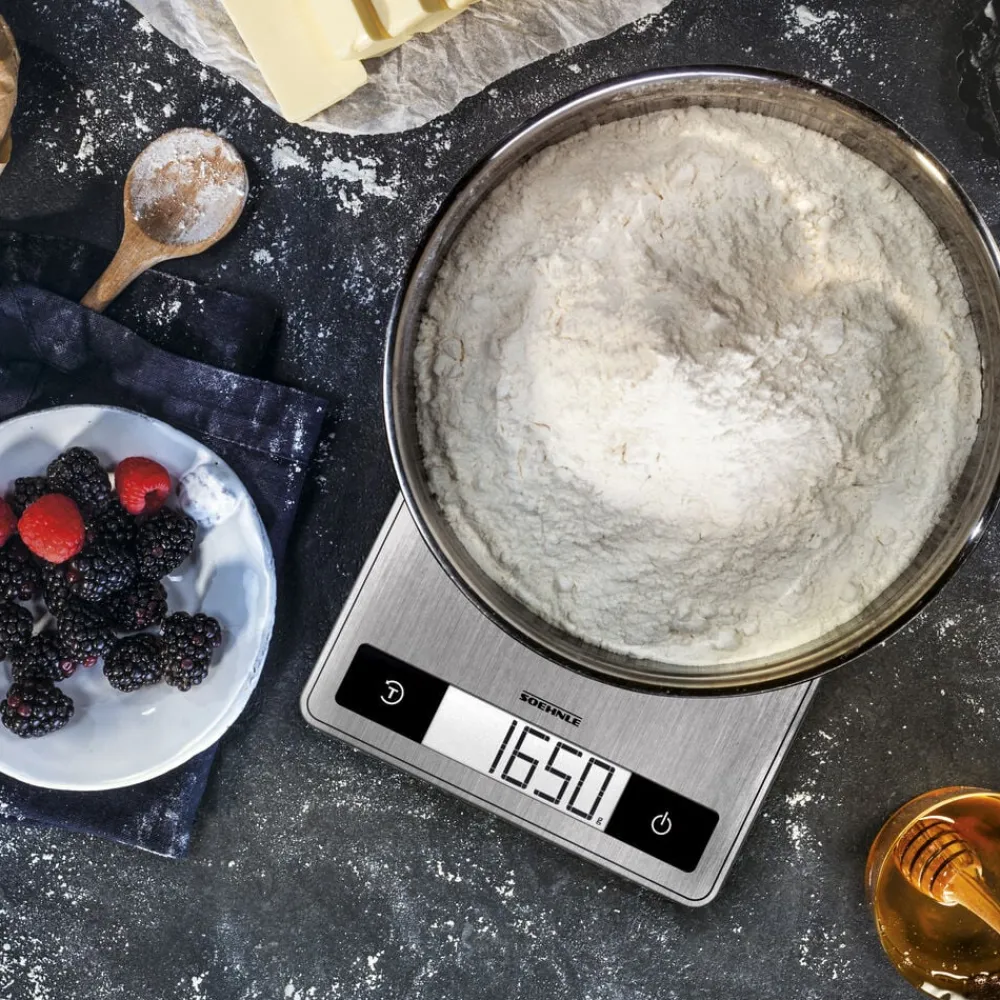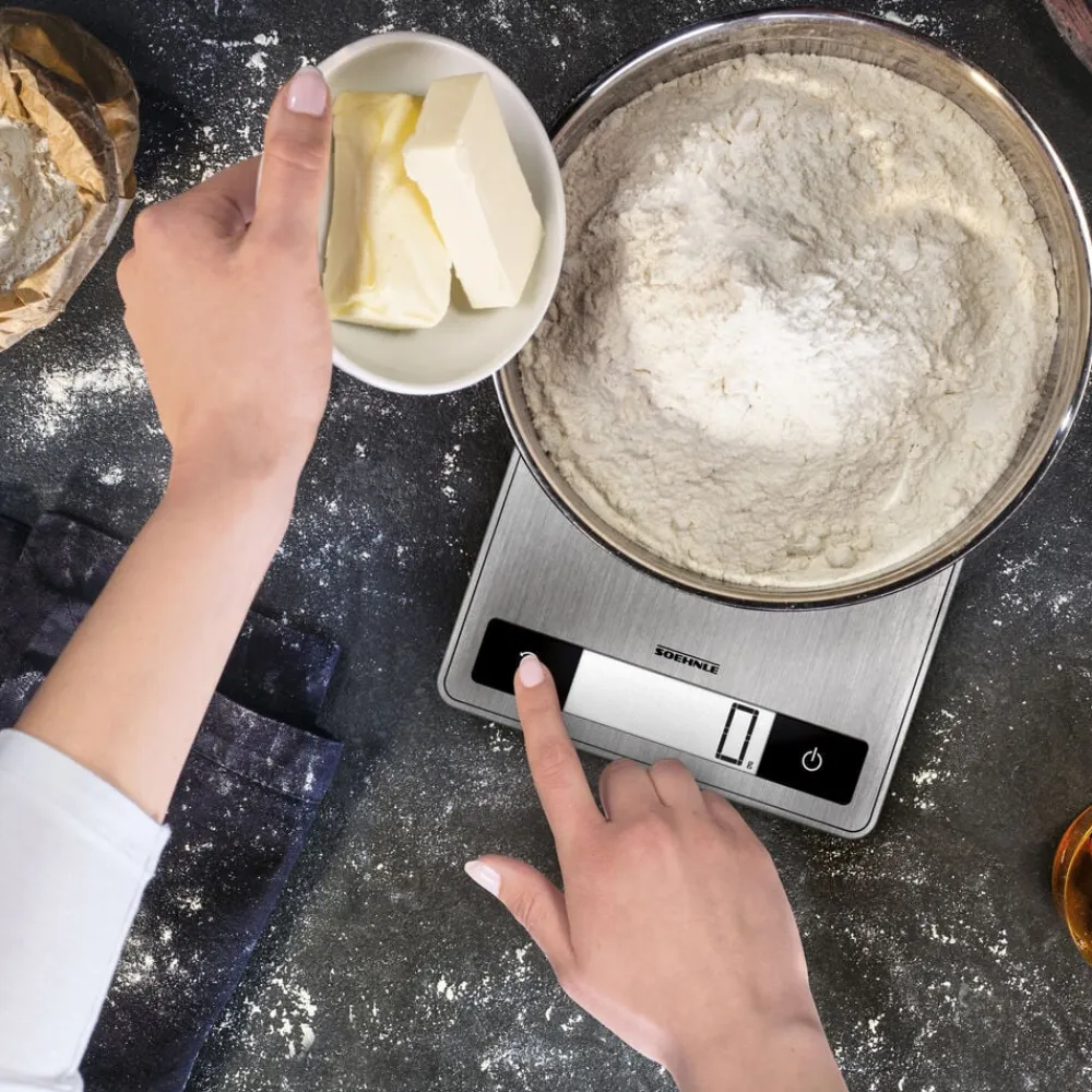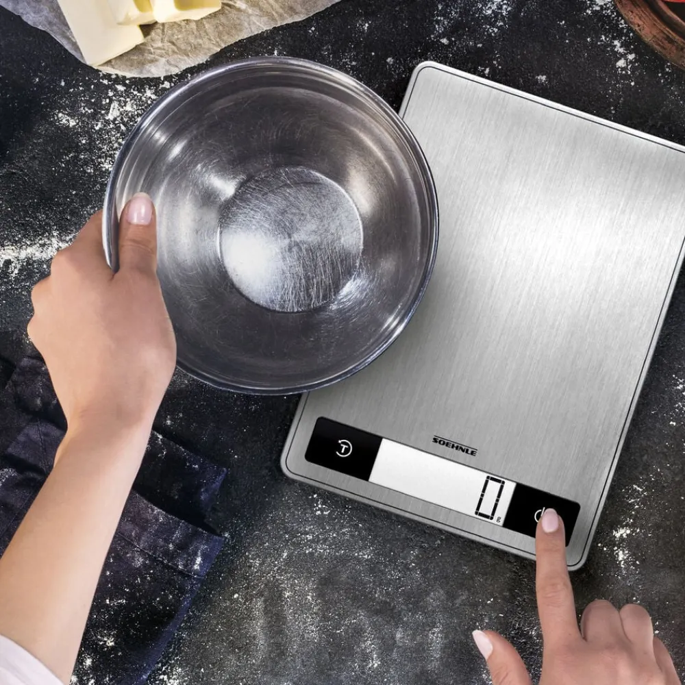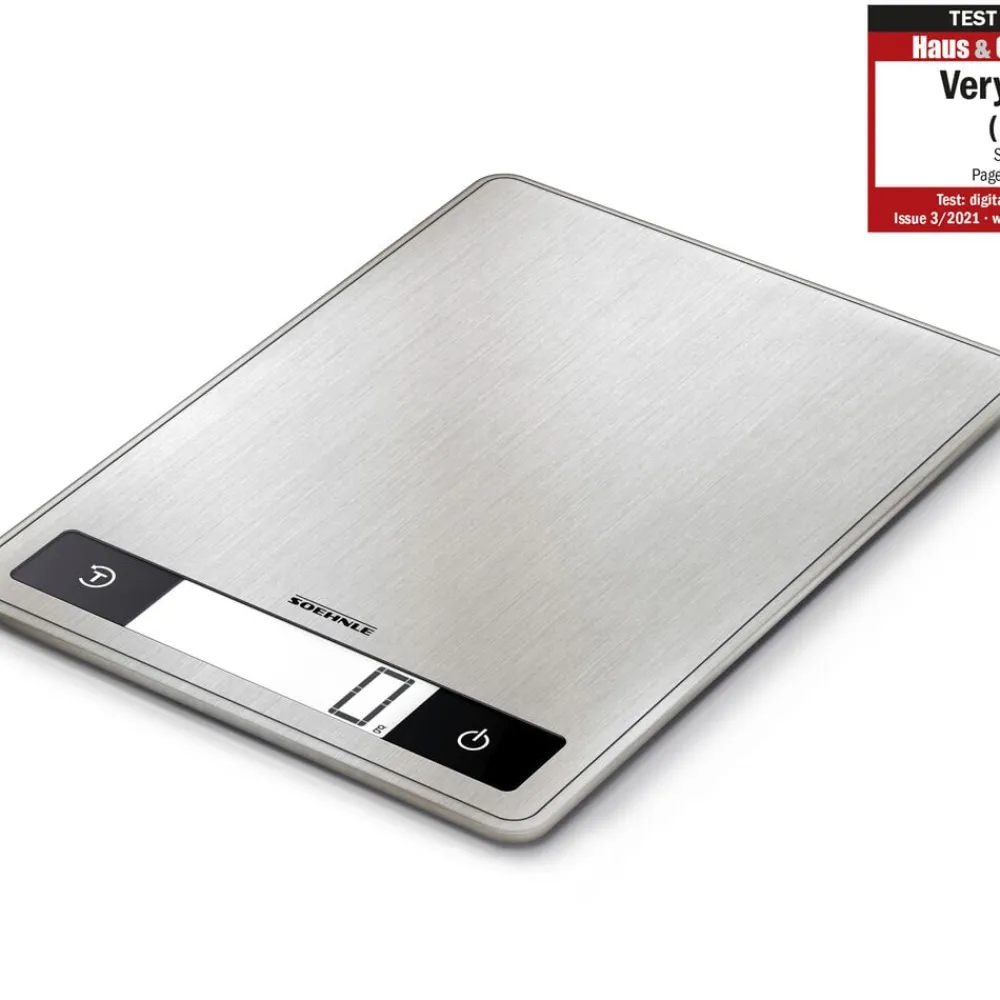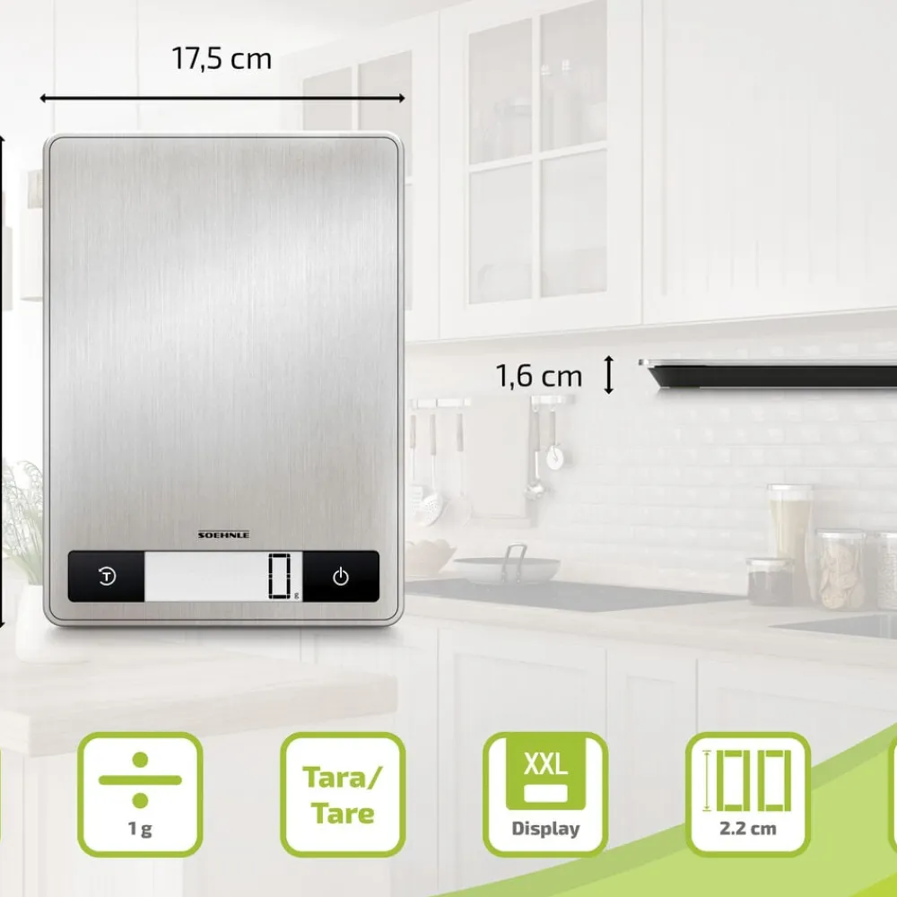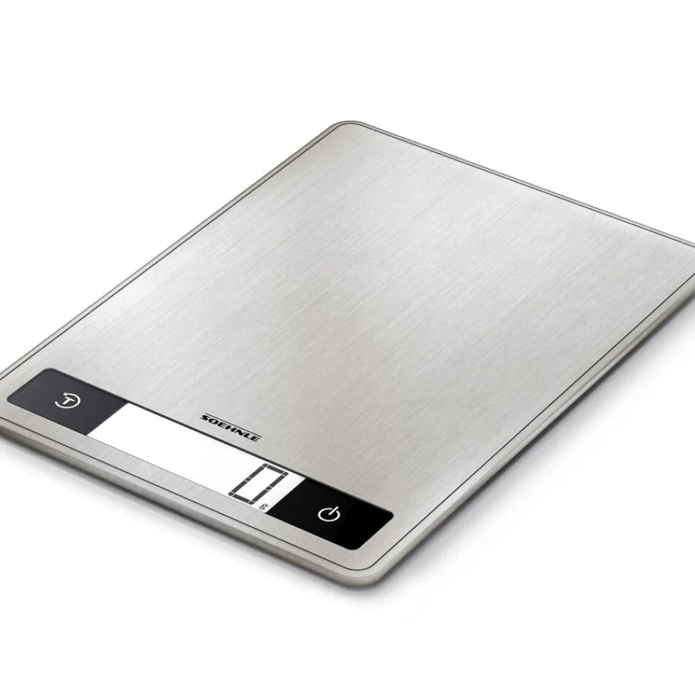 Page Profi 200 er en køkkenvægt i kompakt og ekstra tyndt design (24 x 17,5 x 1,6 cm). Den praktiske overflade i rustfrit stål er nem at rengøre og giver vægten et stilrent udtryk. Vejer op til 15 kg med interval på 1 g, hvilket gør den ideel til fx krydderier. Letlæseligt display, tarafunktion og automatisk sluk. Enhederne vises i g/kg eller oz/lb.