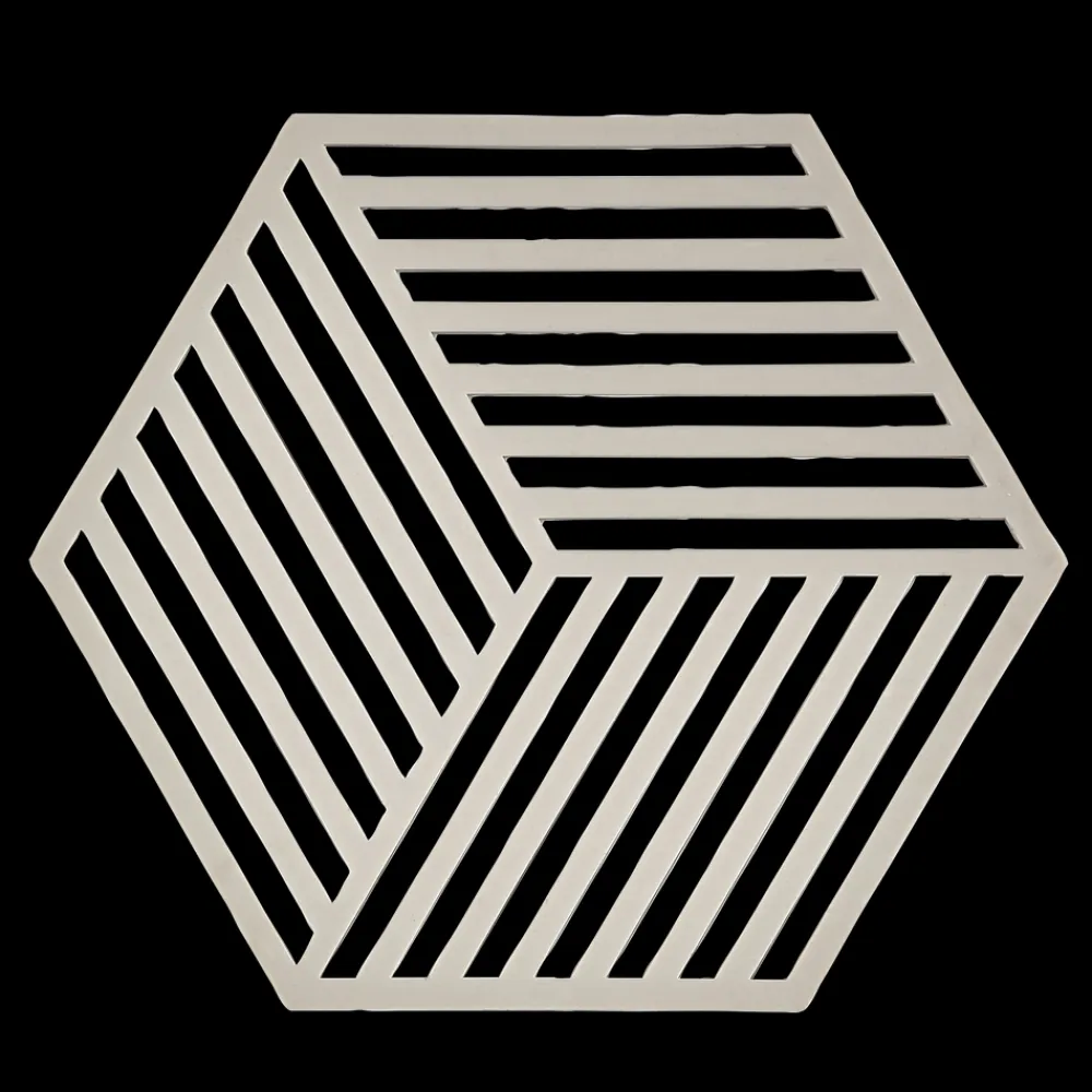Hexagon bordskånerne i silikone er så grafisk dekorative, at de indbyder til at lægge en flok ud i hele bordets længde uden at stille noget på dem. De er varmebestandige op til 250 °C og kan vaskes i opvaskemaskine. 16 x 14 x 0,9 cm.