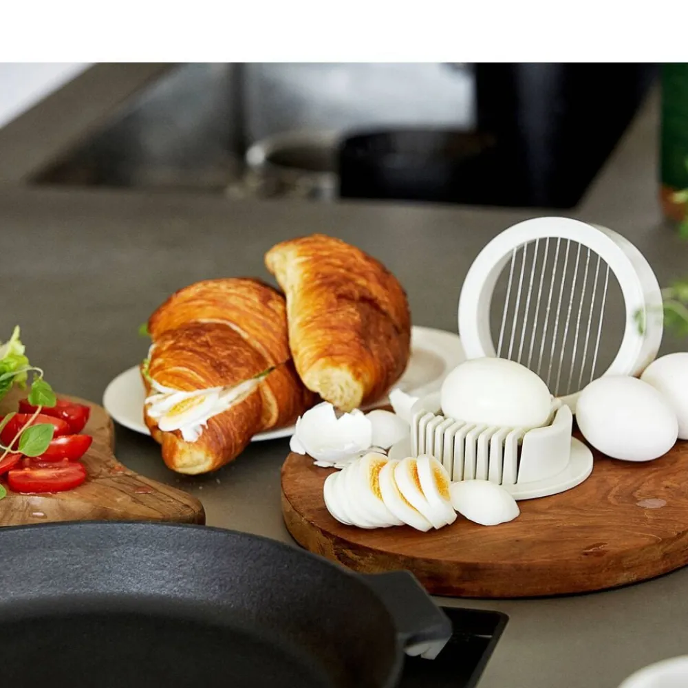 Enkel og elegant æggedeler fra Zone Denmark, der med garanti øger din trang til smørrebrød. Den er ikke bare er et effektivt redskab, der kan dele ægget både på langs og på tværs. Når klingerne har skåret ægget i fine skiver, bliver æggedeleren forvandlet til en fin lille serveringsskål, der pynter på frokostbordet.