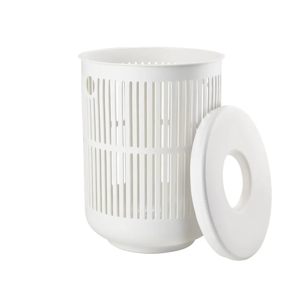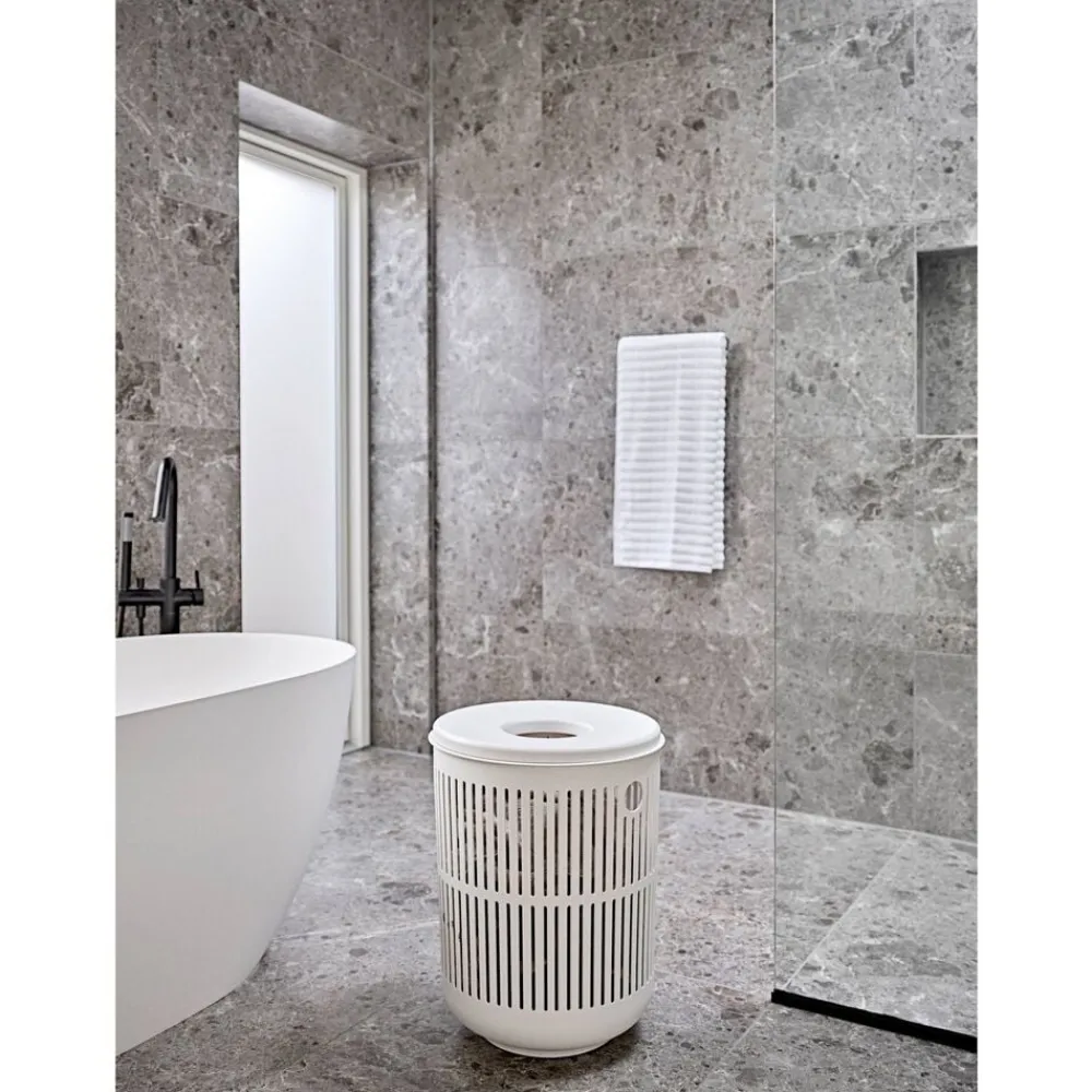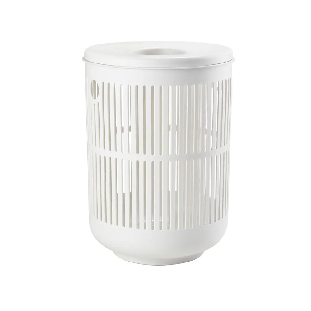 Organisk og praktisk – så simpelt kan man beskrive vasketøjskurven fra Zones Ume-serie. Med denne kurv er det nemt at holde styr på vasketøjet. Låget kan let løftes af, men det behøver du ikke altid. Strømper og andre småting kan nemlig smides igennem hullet i midten. På siden er to mindre huller, der fungerer som håndtag, når vasketøjskurven skal flyttes.