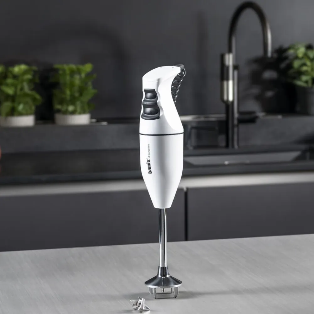 bamix® Classic-stavblender med en kraftig 140 watt motor, der sikrer pålidelig hjælp til selv de hårdeste opgaver i køkkenet. Stavblenderen har to hastighedsindstillinger og en praktisk ledning, der giver masser af fleksibilitet. Til produktet medfølger en multifunktionskniv og en instruktionsmanual. Livstidsgaranti på motor.