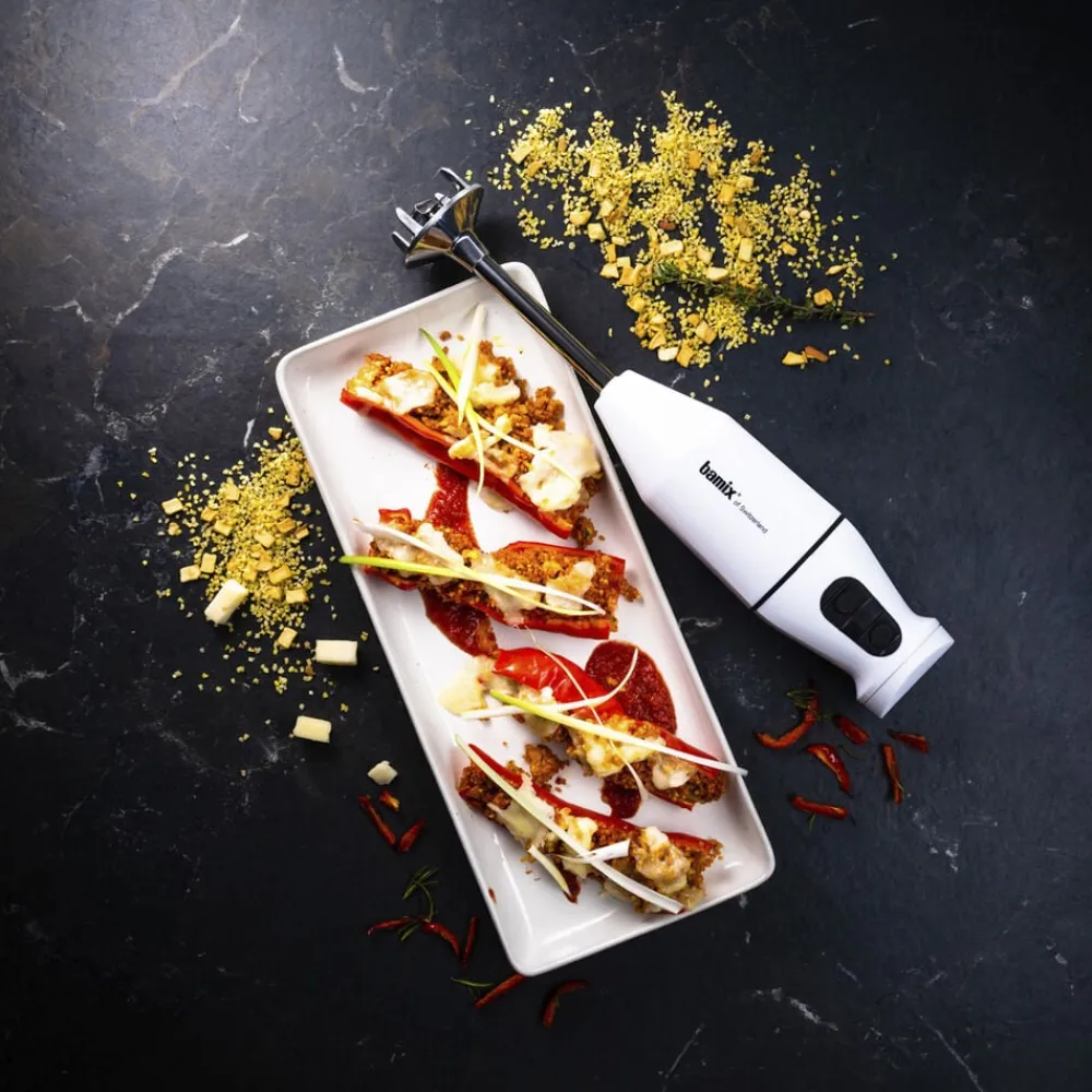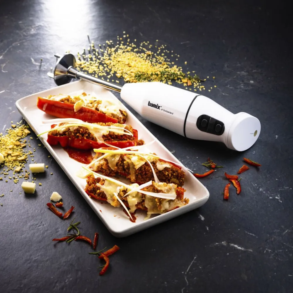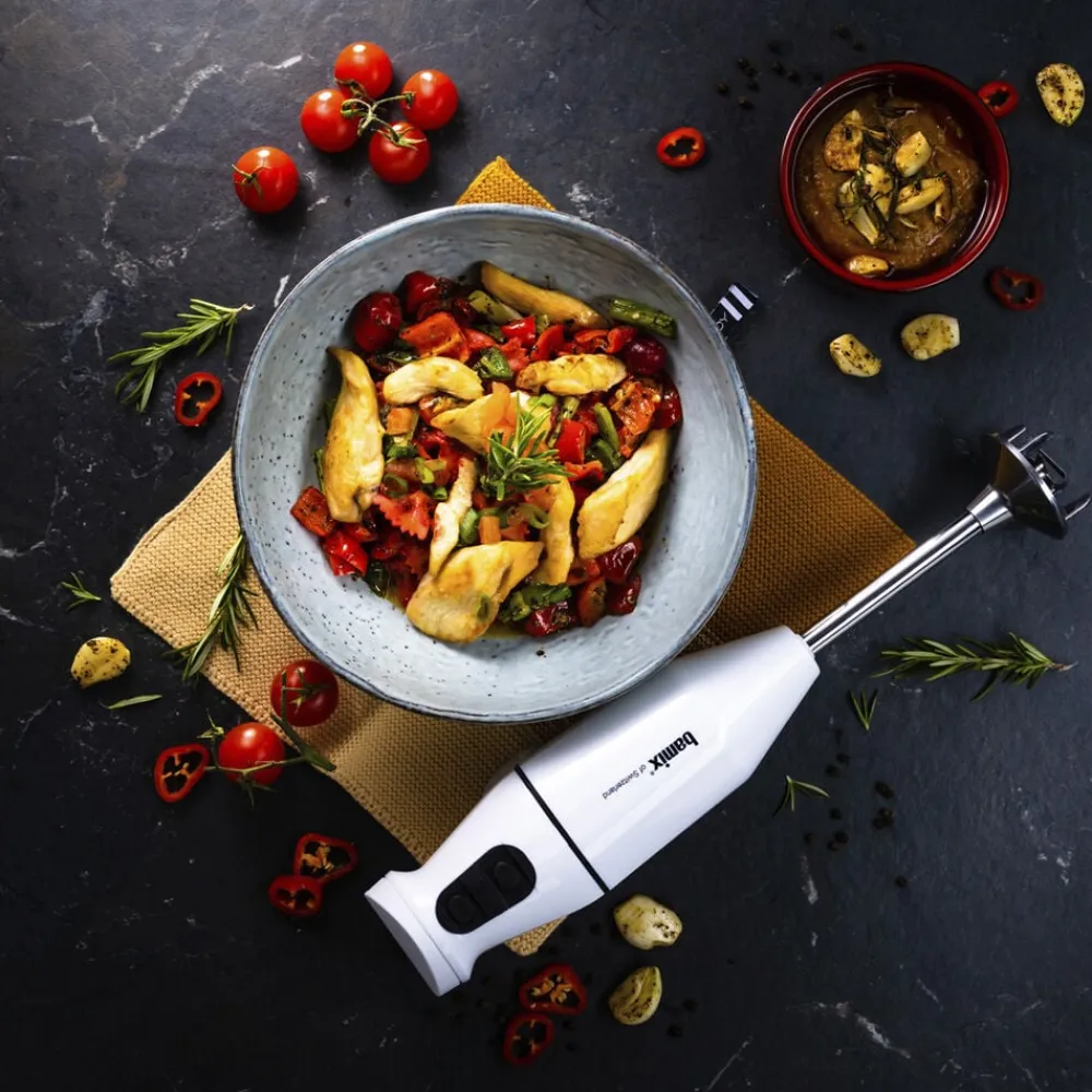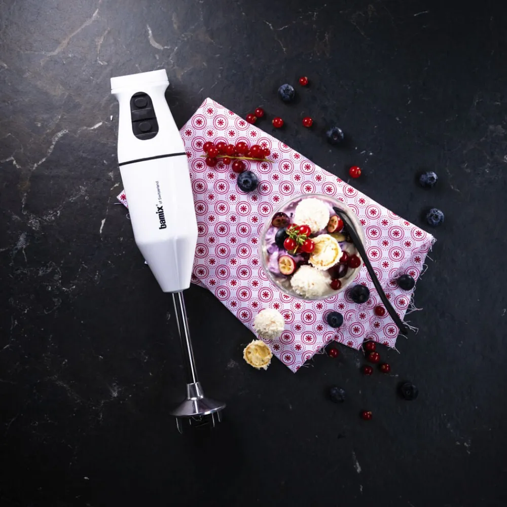 Med din bamix® Cordless og dens tilbehør kan du piske, purere, røre, blende, mikse, mose, knuse og hakke.