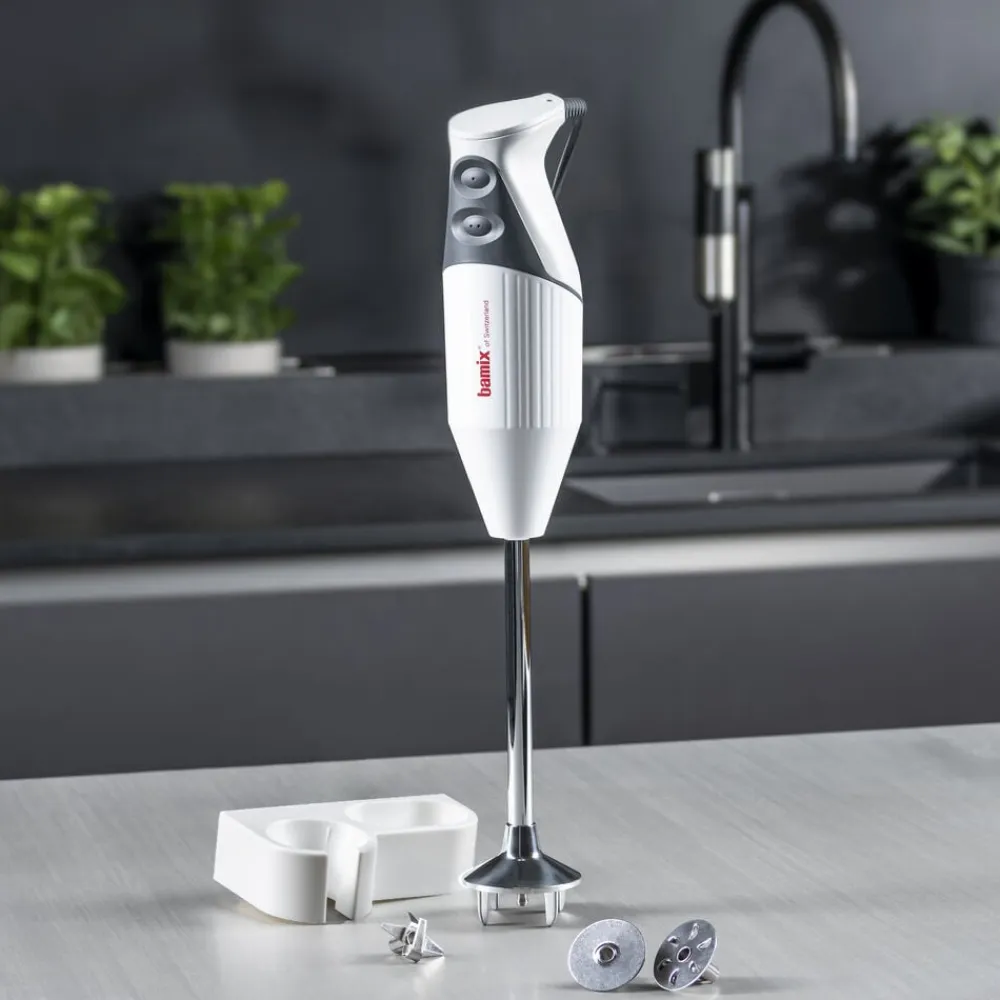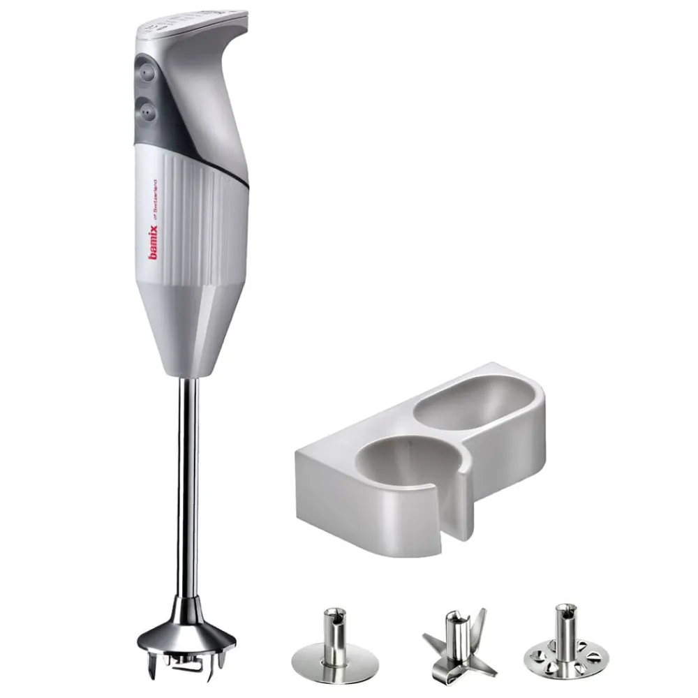 bamix® Gastro Pro-2-stavblender med en kraftig 200 watt motor, der sikrer pålidelig hjælp til selv de hårdeste opgaver i køkkenet. Stavblenderen har to hastighedsindstillinger, softgrip-sikkerhedsknap og en mixerdel på 30 cm, som kan komme under vand, hvilket gør stavblenderen perfekt til professionelle køkkener. Til produktet medfølger multifunktionskniv, blenderskive, piskeskive, vægholder samt en instruktionsmanual. Livstidsgaranti på motor.