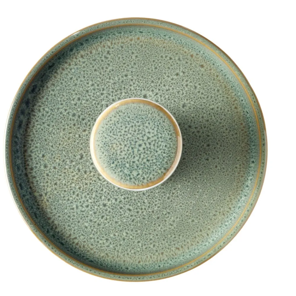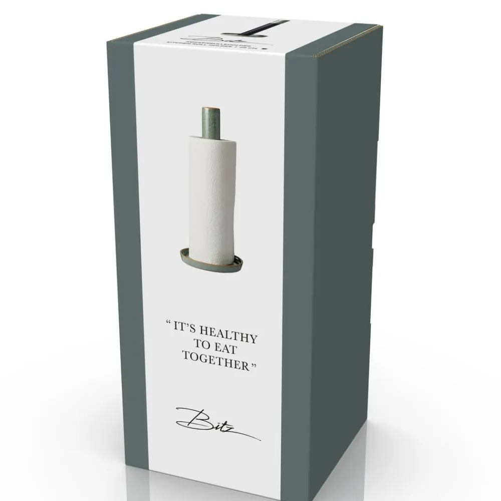Superflot køkkenrulleholder der ser godt ud både på arbejdsbordet i køkkenet og på middagsbordet. Den praktiske kant på holderens fod hindrer papiret i at rulle sig ud. Holderen er 28 cm høj, hvoraf de øverste 6,5 cm er i stentøj med reaktiv glasur.
