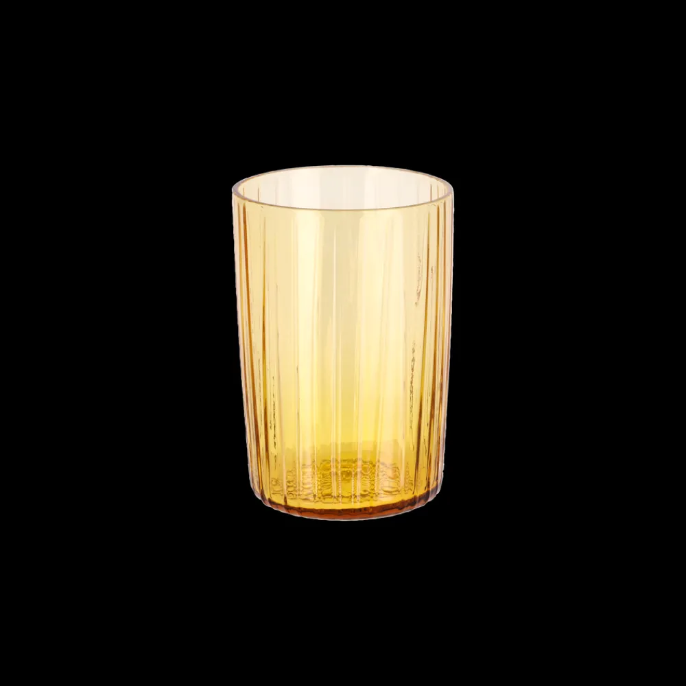 De flotte vandglas i gennemfarvet glas har det samme fine, riflede look som Kusintha-seriens vandflasker. Glassene fås i grøn, amber, pink, blå og en helt klar udgave. Når du køber fra Kusintha-kollektionen, støtter du samtidig udsatte børn i verdens fattigste områder.