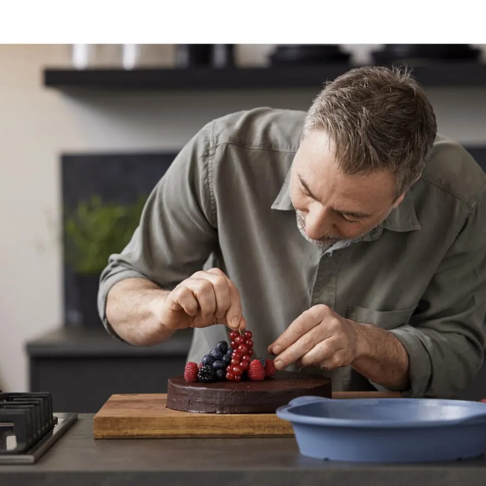 Denne runde kageform er oplagt til at bage luftige lagkagebunde og støbe lækre moussekager. Formen er fremstillet i silikone, der sikrer, at kagen ikke sidder fast og går i stykker, når formen skal fjernes. Formen kan fryses, vaskes i opvaskemaskine og tåler temperaturer op til 220 grader C. Kan rumme 2,2 liter.