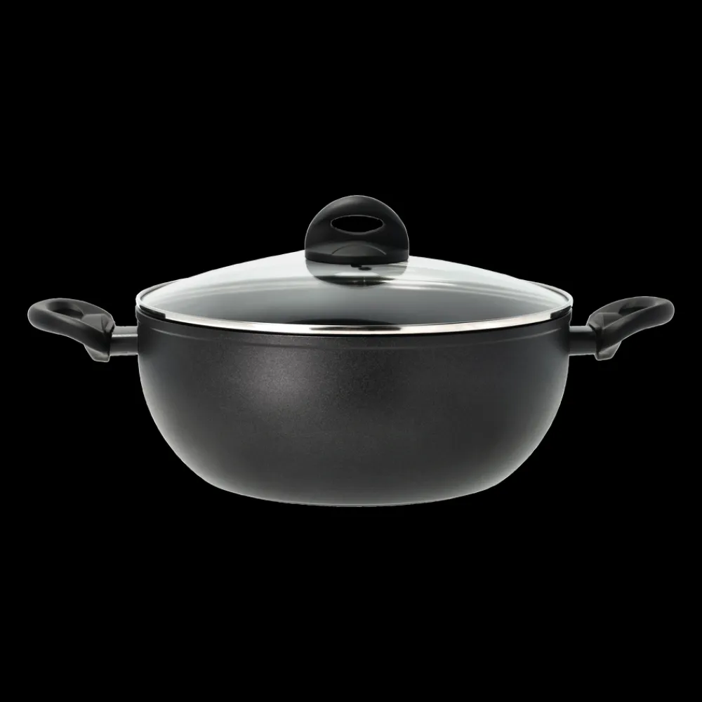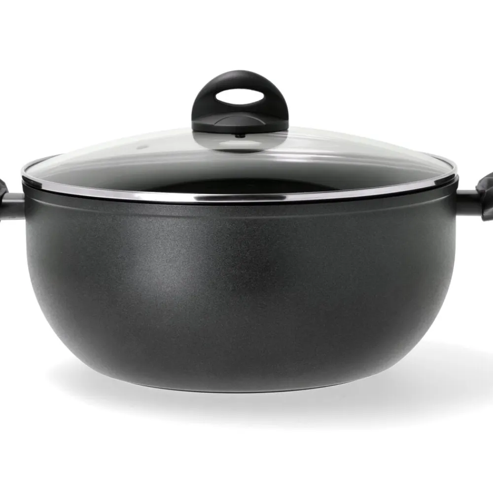 Fremstillet i kraftig aluminium. 4 mm induktionsbund og en keramisk non-stick belægning, der sikrer at maden slipper lettere og at rengøringen bliver nem. Stegegrydens brede bund sikrer en stor stegeflade. Glaslåg med damphul medfølger. Anvendelig på alle varmekilder – inkl. induktion. Ikke egnet til ovn. For at sikre belægningen lang levetid anbefales brug af redskaber i plast, nylon eller træ. Ikke egnet til opvaskemaskine, opvask med børste, varmt vand og opvaskemiddel anbefales, også inden første brug. Diameter 30 cm. Højde 13,5 cm.