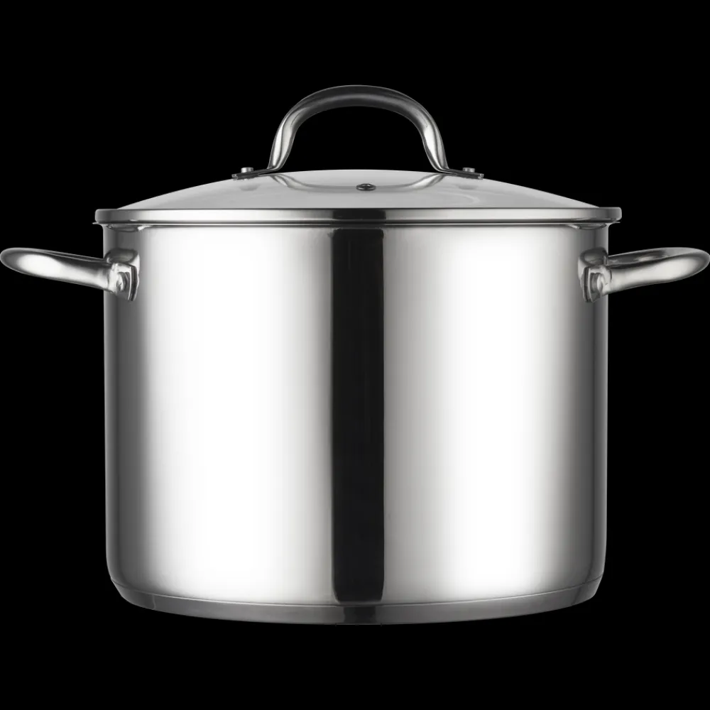 Fremstillet i rustfrit stål med kraftig induktionsbund, blankpoleret udvendigt, matpoleret indvendigt og med måleskala.