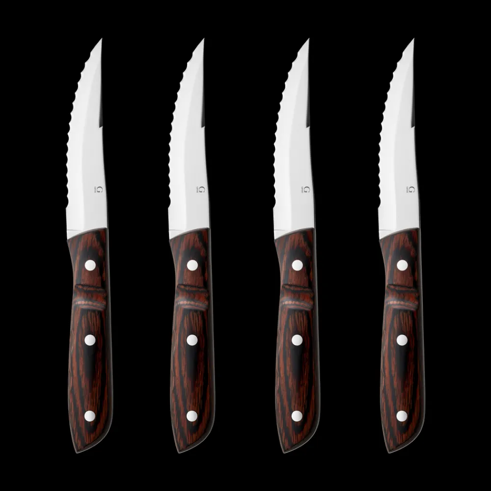 Opvask i hånden anbefales for at bevare de smukke træhåndtag.