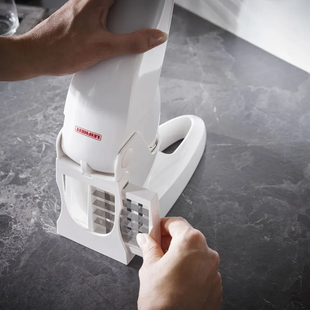 2 udskiftelige blade/skær til pommes frites i 2 forskellige størrelser. 10 mm og 12 mm.