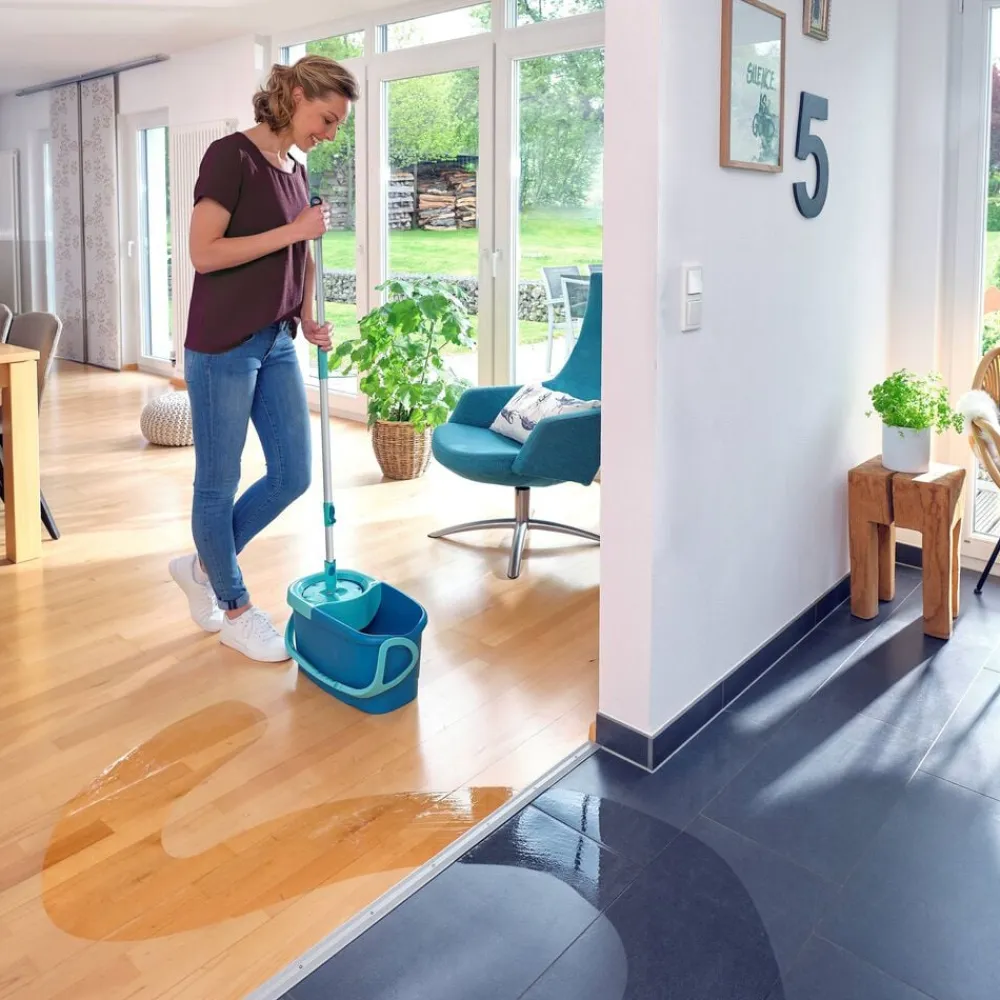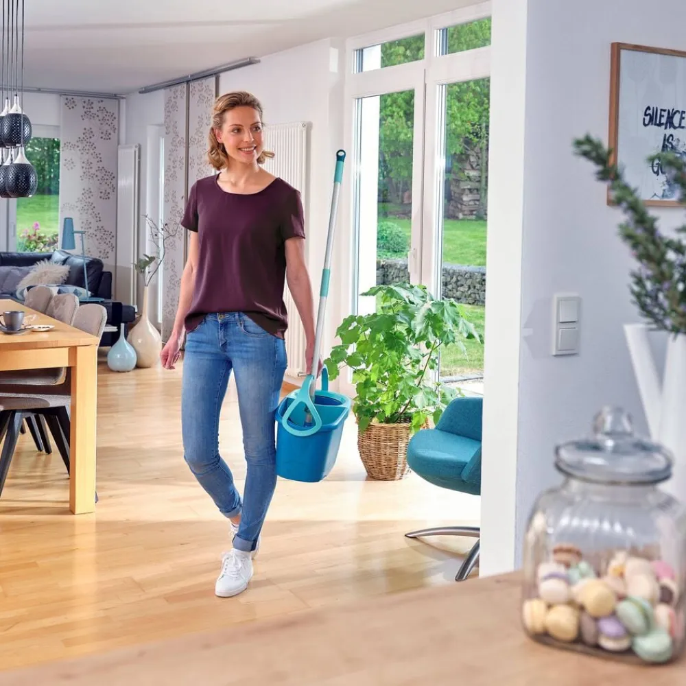 Centrifugeringsteknologien presser overskydende vand ud af moppen, når den ‘pumpes’ i spandens vrider, og frigiver både snavset vand og snavs inde fra fibrene. Du kan nemt bestemme, hvor fugtig moppen skal være, samtidig med at du får en bedre arbejdsstilling og undgår at skulle have hænderne i vandet.
