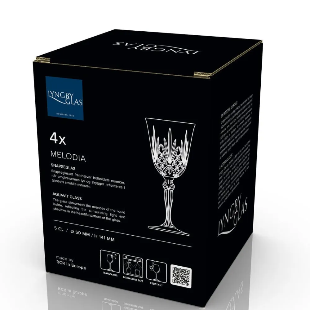 Glæd dine gæster med en dejlig snaps i et elegant snapseglas, som fremhæver indholdets nuancer, når omgivelsernes lys og skygger reflekteres i glassets smukke mønster. Snapseglasset egner sig også godt til en varm og fyldig portvin, smagfuld likør eller sødmefuld dessertvin. Tåler opvaskemaskine. 5 cl, 4 stk.