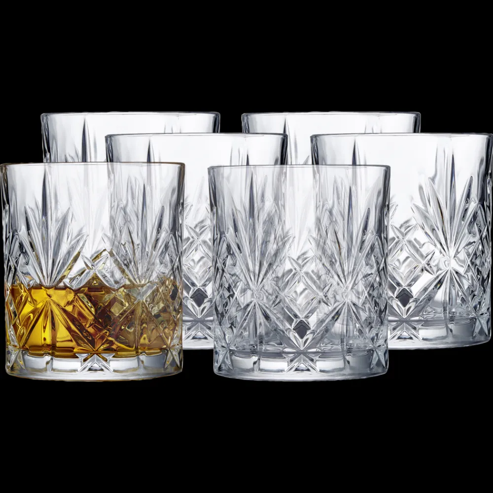 Nyd yndlingswhiskyen af det klassiske whiskyglas, som fremhæver drikkens nuancer, når omgivelsernes lys og skygger reflekteres i glassets smukke mønster. Tåler opvaskemaskine. 31 cl, højde 9,5 cm, 6 stk.