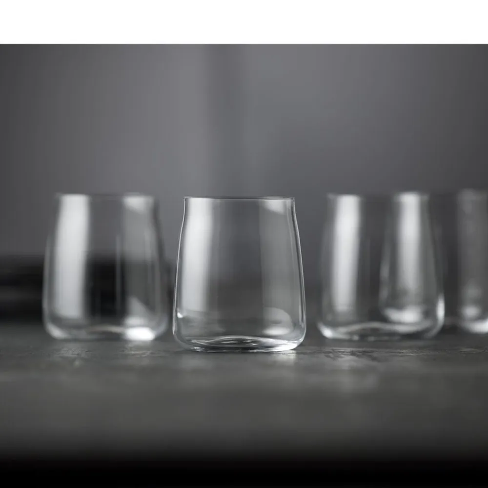 6 smukke vandglas fra glasserien Zero fra Lyngby Glas. Nyd vand, whisky eller en anden forfriskning sammen med glassenes fine elegance. Tåler opvaskemaskine. 42 cl.