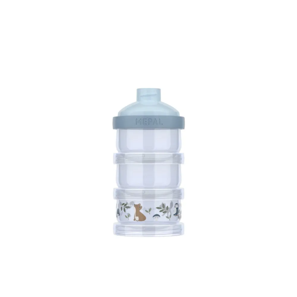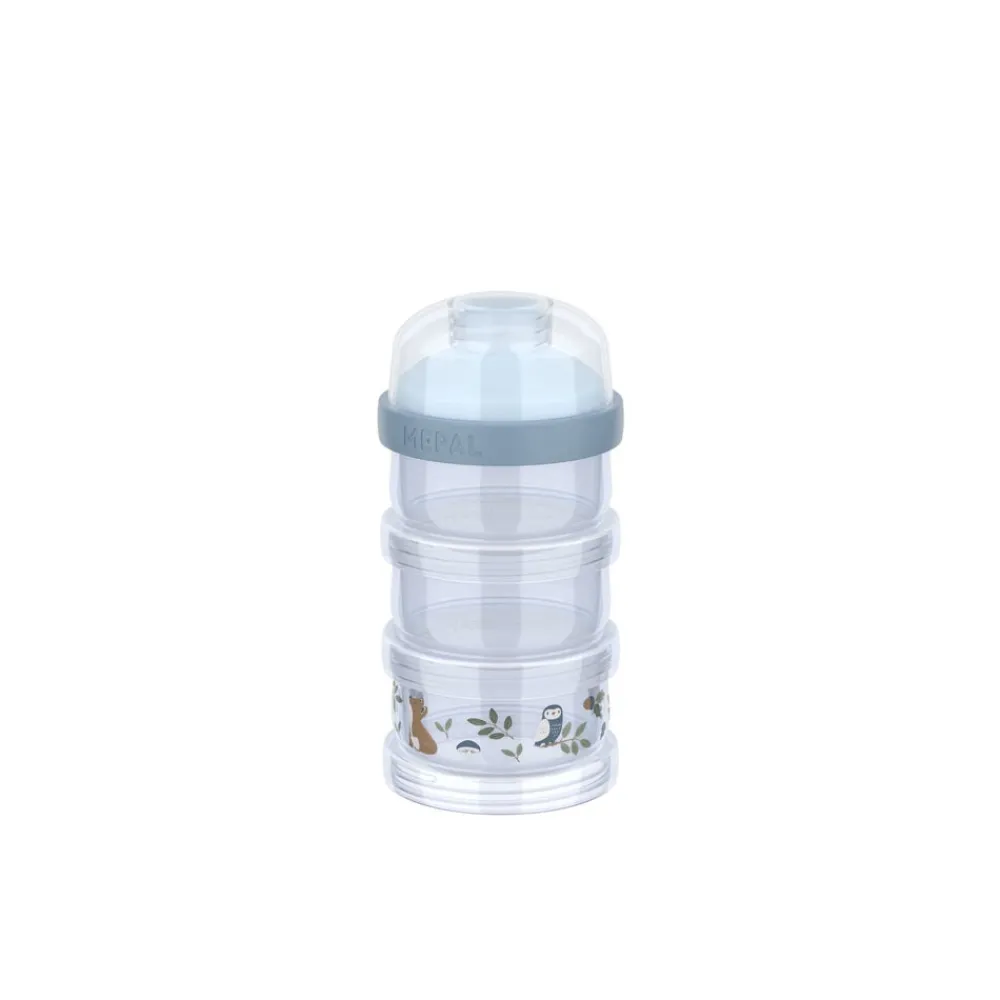Med det tredelte Mepal Mio mælkepulvertårn er det nemt og hygiejnisk at have mælkepulver med dig overalt. De tre stabelbare beholdere på hver 120 ml er lukkes individuelt med skruelåg. Toppen har lufttæt forsegling, og den smarte hældetud gør det let at hælde mælkepulver i en flaske. Det kompakte design er ideelt til rejser og nemt at rengøre i opvaskemaskinen. Mælkepulvertårnet tåler desuden køleskab, fryser og mikroovn. Diameter 7,8 cm, højde 15,7 cm. PP-plast.