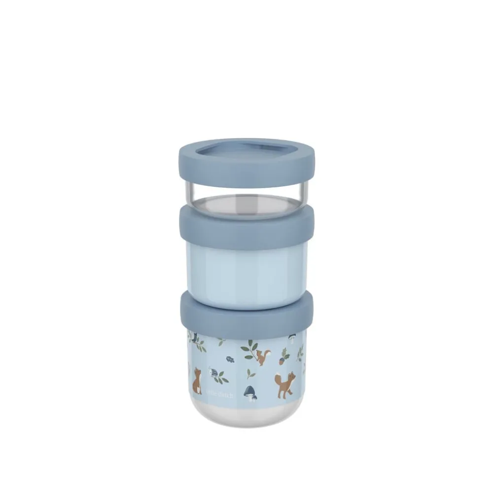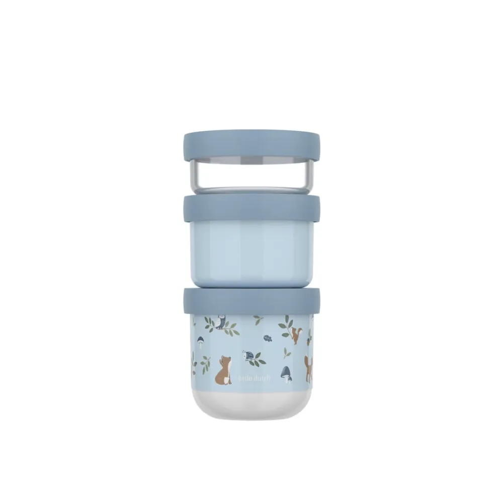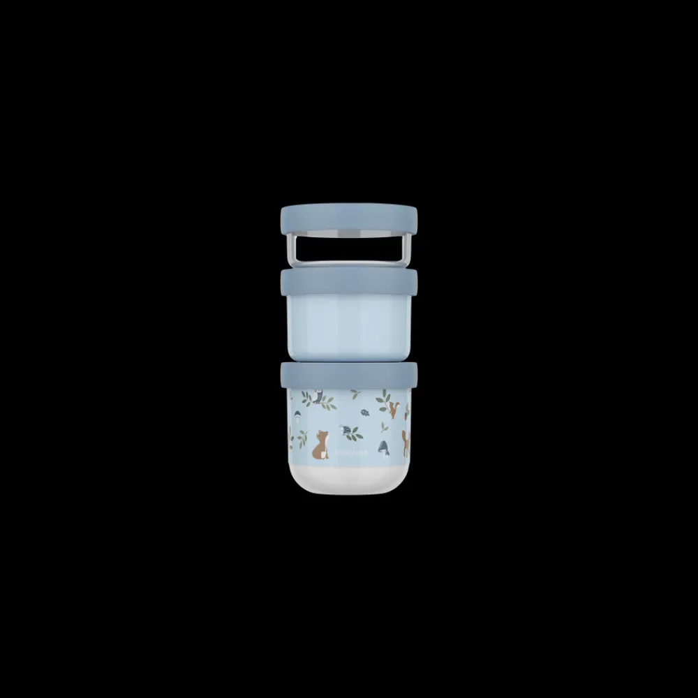 Mio snackboks-tårn består af tre snackbokse i forskellige størrelser, som nemt kan klikkes sammen og tages med på tur. Alle boksene har tætsluttende skruelåg. Den mindste boks er transparent og rummer 100 ml, den mellemste er ensfarvet og rummer 175 ml, mens den største har et karakteristisk Mio-motiv og rummer 275 ml. Alle tre størrelser tåler fryser, og de to største bokse kan også anvendes i mikroovn.