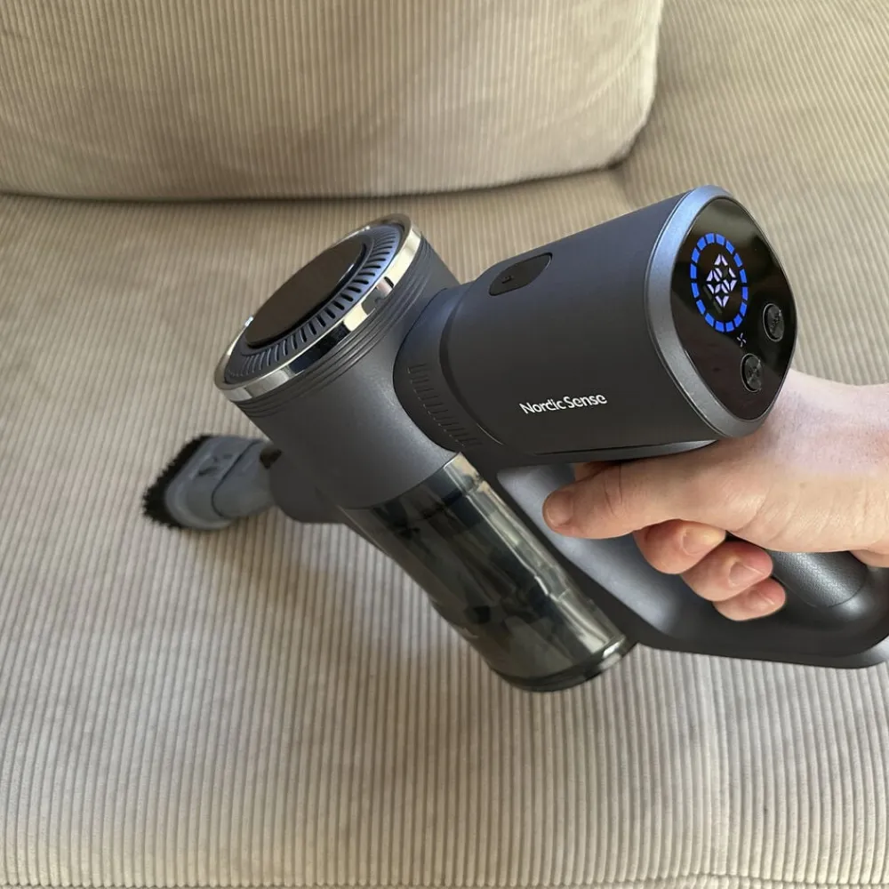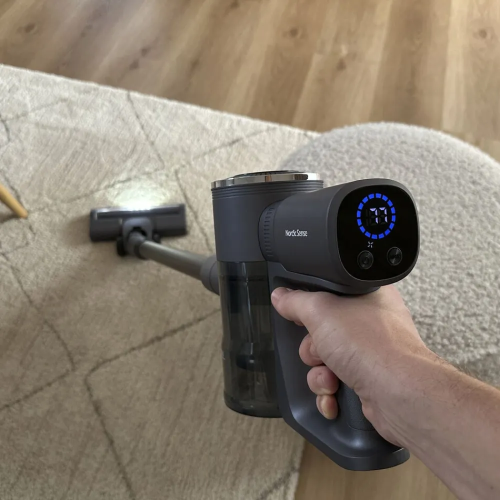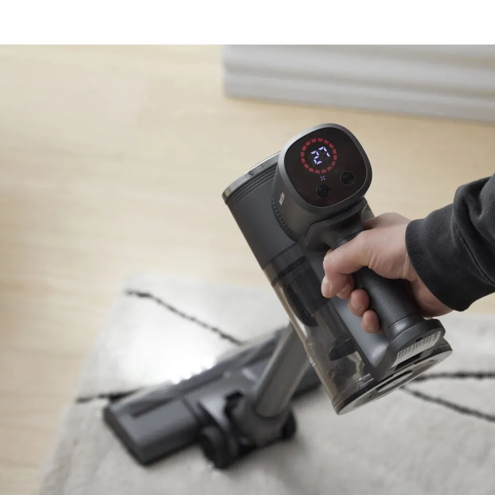 Enkelt, effektivt og uden ledninger. Denne ledningsfri støvsuger er udstyret med en kraftig DC-motor og en gulvbørste med hjul. Det er muligt at vælge mellem to sugestyrker, afhængigt af opgavens omfang. Det aftagelige 2200mAh Li-ion batteri giver op til 40 minutters arbejdstid på laveste niveau og 20-23 minutter ved maksimal styrke – nok til en hurtig rengøring i hjemmet. Det er nemt at tage batteriet ud og oplade det, hvor det passer bedst, så du ikke behøver at have hele støvsugeren til at stå ved stikkontakten. Batteristatus kan aflæses på det indbyggede display, og når det er fladt, tager det 4-5 timer at lade det helt op igen. Støvsugeren har en rummelig 0,6 liters støvbeholder og kører med et støjniveau på 70-80 dB.