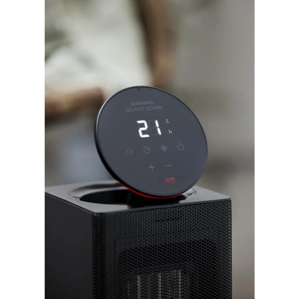 Digital termostat gør det muligt at indstille temperaturen fra 16 til 37 °C. Varmeblæseren er desuden udstyret med 2 varmeniveauer og en praktisk timer, som kan anvendes efter behov. Nem at betjene via LED-touchdisplay eller fjernbetjening.