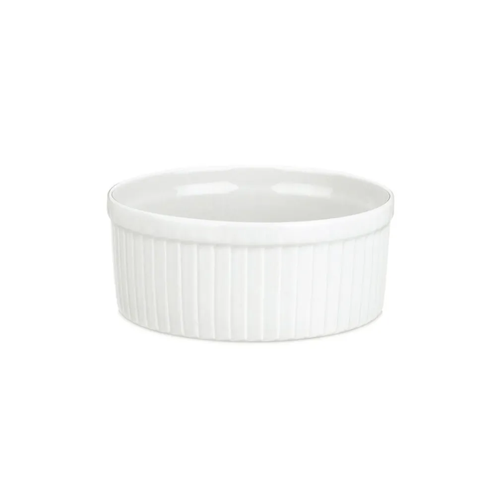Klassisk souffléform på 10 cm med rillede yderkanter. Denne form er lav og derfor også god til gratin og servering af tilbehør.