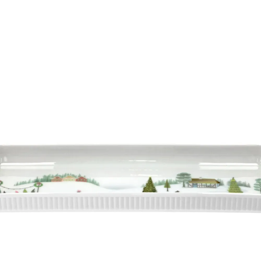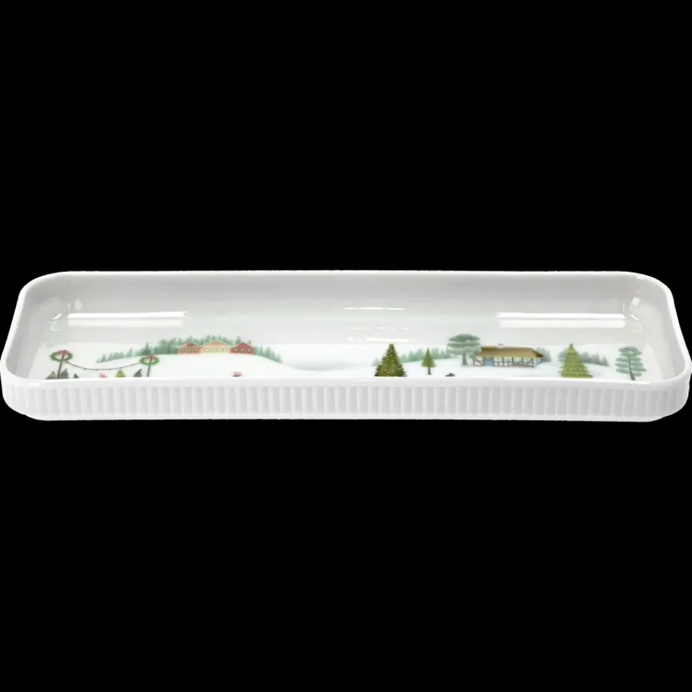 Vinter er Pillivuyts hyggelige stel, som både kan bruges til smukke juleborde og andre festlige lejligheder i de kolde måneder. De rektangulære fade fra stellet Plissé med den karakteristiske, elegante plissering danner baggrund for Vinter fadene, som er dekoreret med eventyrlige vintermotiver.