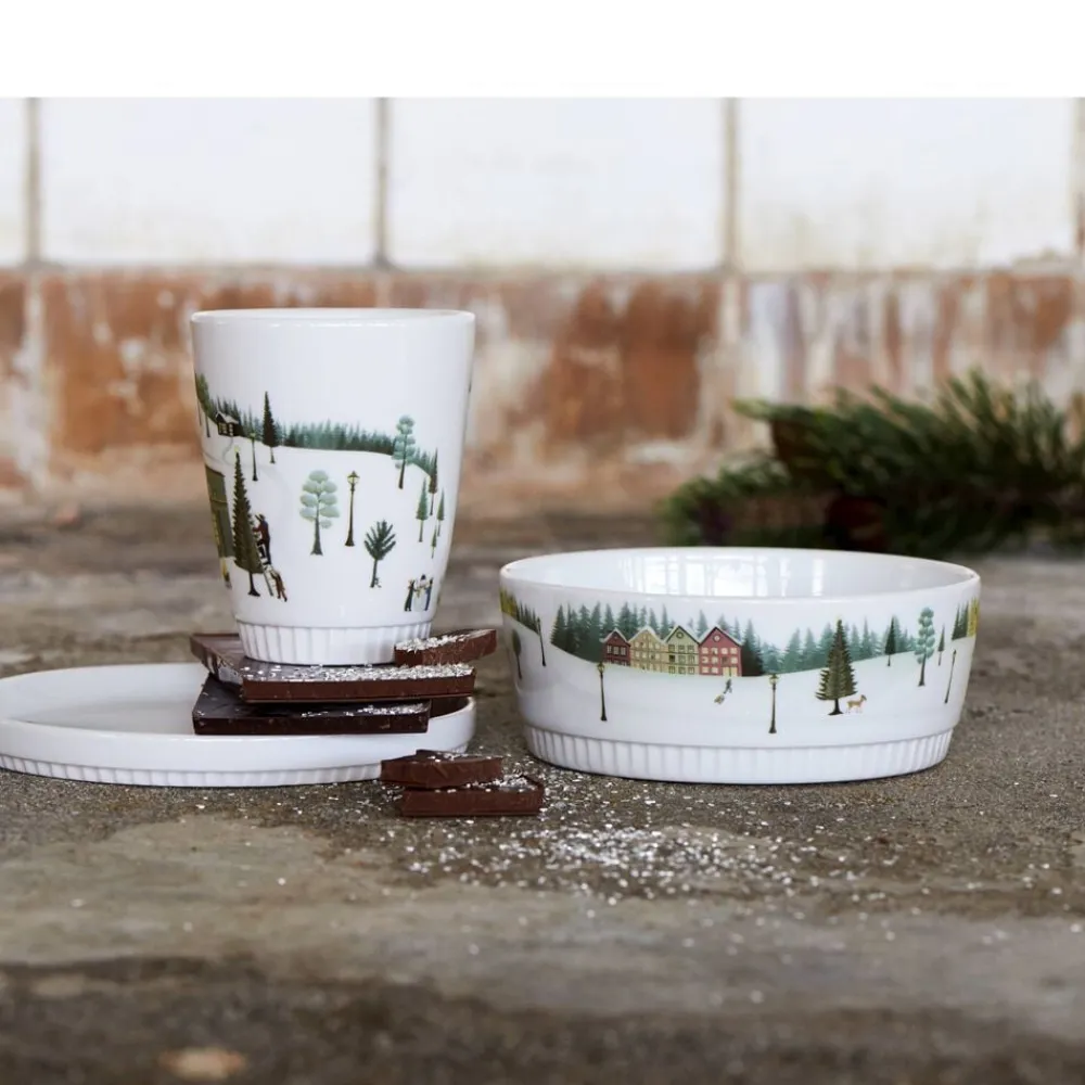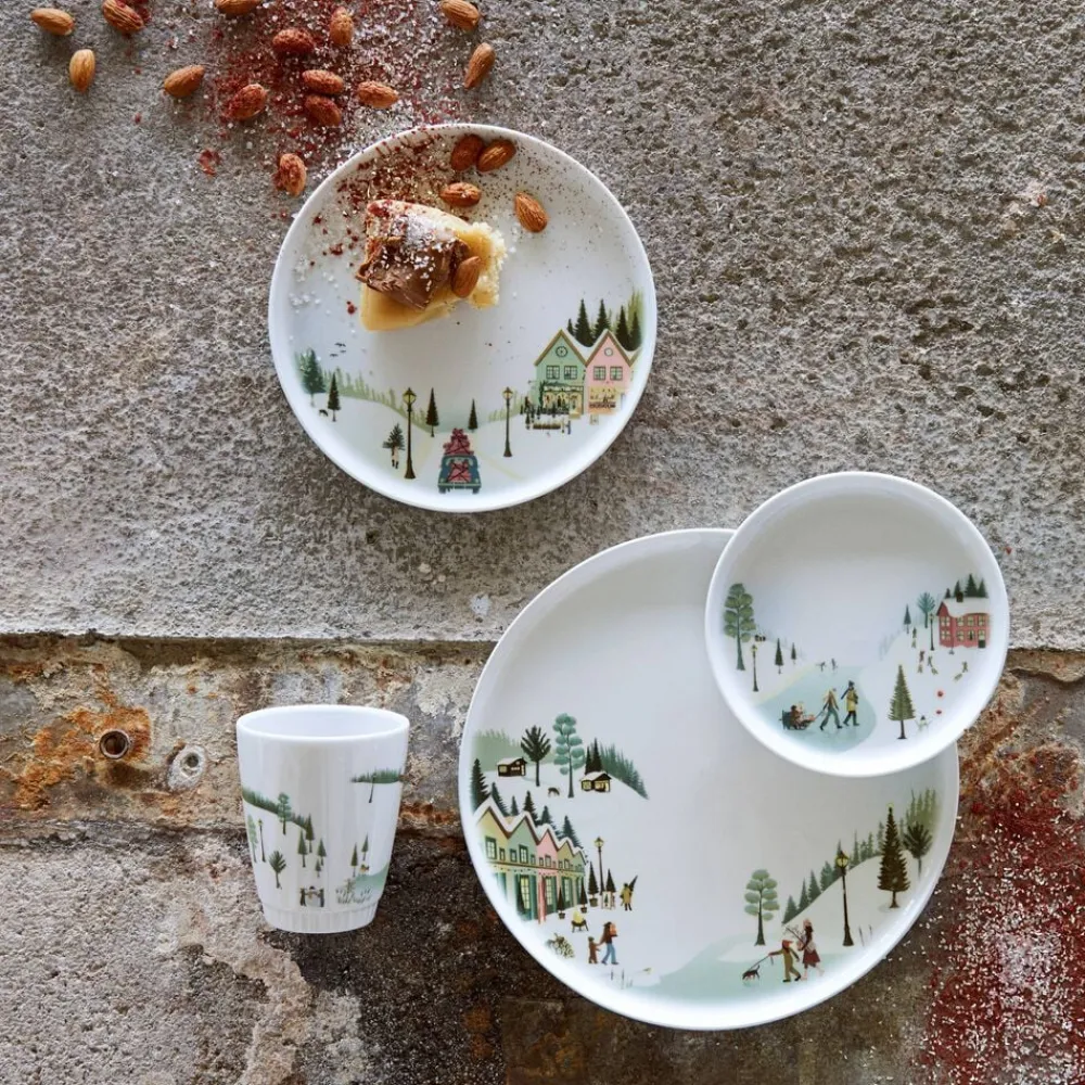 Vinter er skabt i samarbejde med designer Dorthe Mathiesen, som har udsmykket stellet med sin grafiske streg og lyse, nordiske pastelfarver. Flere forskellige motiver afspejler stemningen i de hyggelige vintermåneder og fortæller historier fra de små samfund om leg i sneen, stemningsfulde vinterlandskaber og samvær med familie og venner, som beskueren kan hoppe ind i og selv bygge videre på.