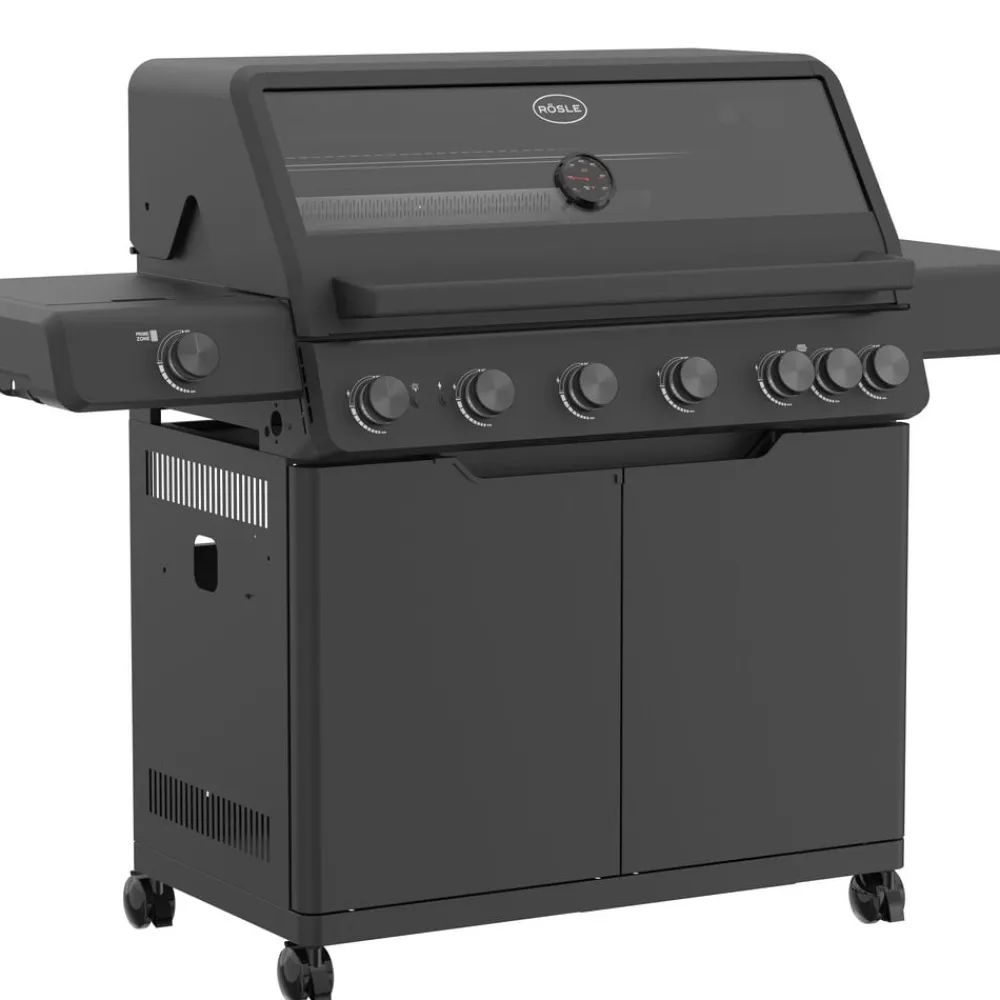 Rösle AllFlame Hero 6 er en suveræn gasgrill med 6 effektive heatspire-hovedbrændere i rustfrit stål (hver 3,5 kW), der sikrer hurtig opvarmning og en jævn varmefordeling. Den ekstra store grillflade på 92,5 x 45 cm og varmehylden på 92,5 x 16 cm giver maksimal kapacitet til tilberedning. Grillen er udstyret med en primezone-sidebrænder (4 kW) i venstre sidebord, der giver ekstremt intensiv varme – perfekt til hurtig stegning og en sprød stegeskorpe. Derudover har grillen en integreret bagbrænder (3 kW), der fordeler varmen og er ideel til langsom tilberedning af større stege eller brug af rotisseri. De emaljerede støbejernsriste sikrer de klassiske grillstriber på kødet. Det smarte Vario+ grillsystem giver dig mulighed for at udskifte den runde rist med en pizzasten (23937), grillplade (24145), gryde (24404) eller wok (24143), som placeres tæt på varmen og hurtigt bliver meget varm. Vario-tilbehør sælges separat. Pulverlakeret stålkabinet beskytter mod vind og vejr, og der er plads til en gasflaske på op til 11 kg.