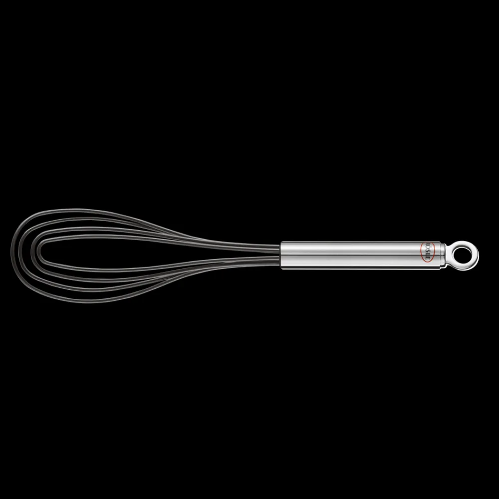 Det flade piskeris er specielt egnet til at piske mindre mængder af ingredienser sammen i små skåle, da det ikke fylder meget. Materialerne 18/10 rustfrit stål og silikone betyder, at piskeriset klarer selv høje temperaturer på op til 260 °C. Tåler opvaskemaskine.