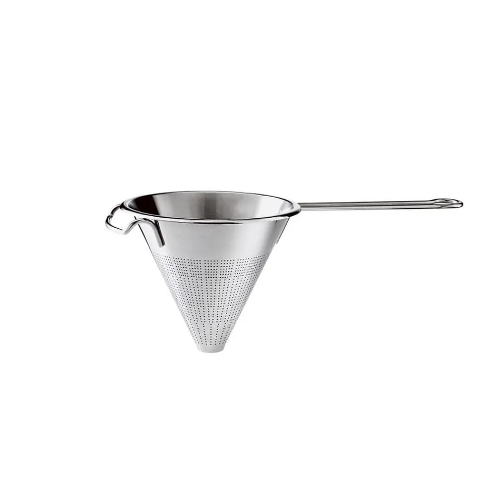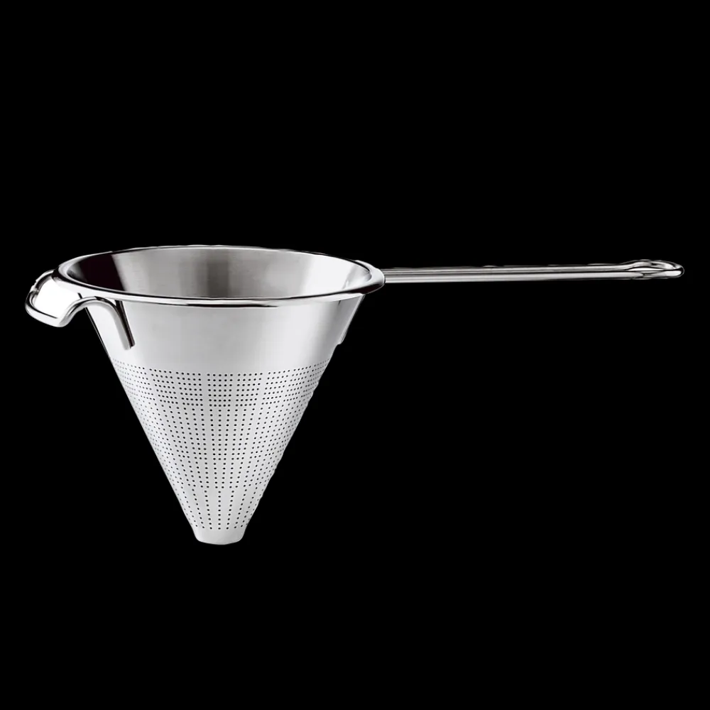 RÖSLE spidssigte til at si saucer, supper og til hurtig opvarmning eller til at skylle. Spidssigten er meget fint perforeret med robuste håndtag.