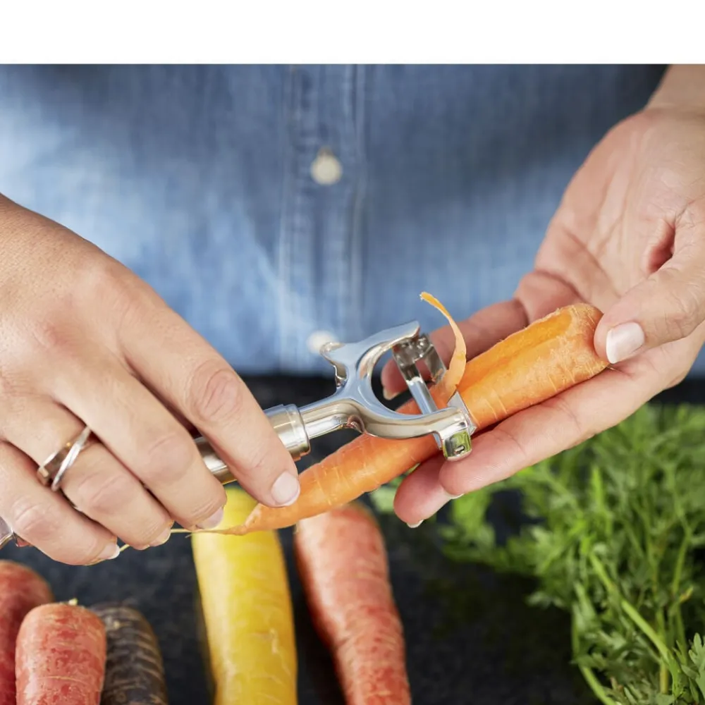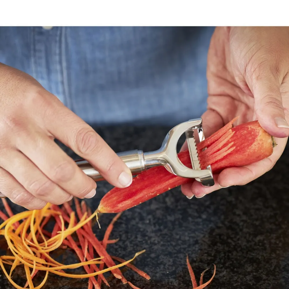 Grøntsagsskrællerens form er ideel til lange, tynde grøntsager som agurk, gulerod og courgette med skræl af mellemtykkelse. Med udskifteligt blad. Ikke egnet til opvaskemaskine.
