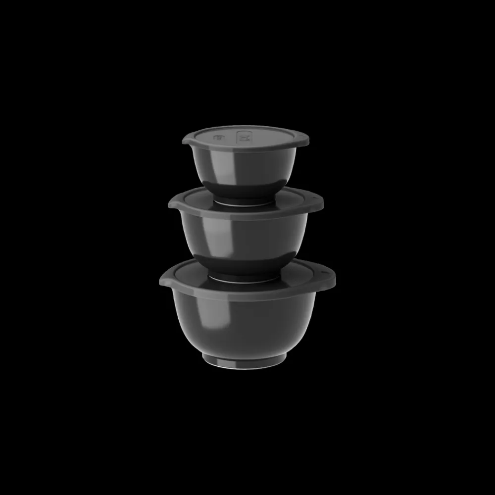 Margrethe miniskålesæt fra Rosti. Sættet indeholder 0,25 + 0,5 + 0,75 liter Margrethe-skåle med tilhørende låg.