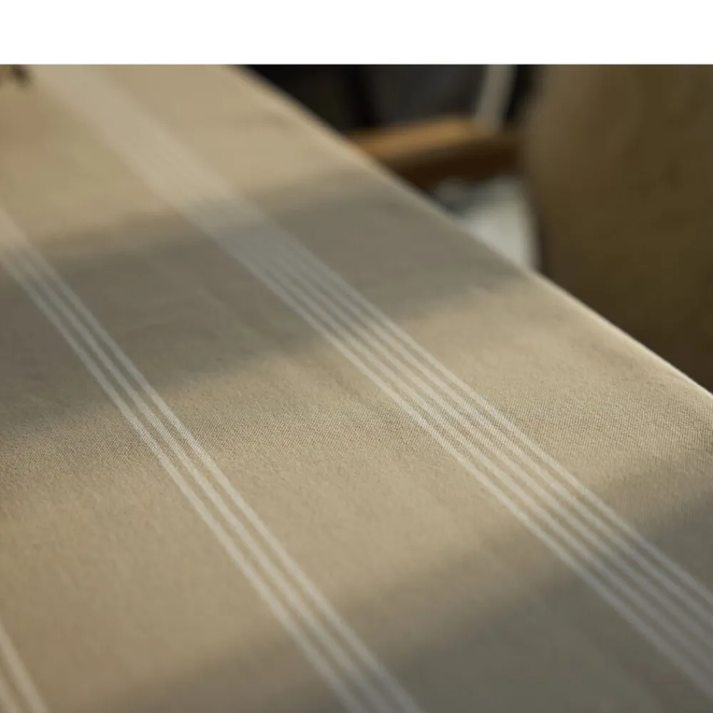 Med sit klassiske stribede design tilfører Moments bordet et tidløst og roligt udtryk. De vævede striber står i blød kontrast til den garnfarvede bund og skaber en harmonisk helhed.