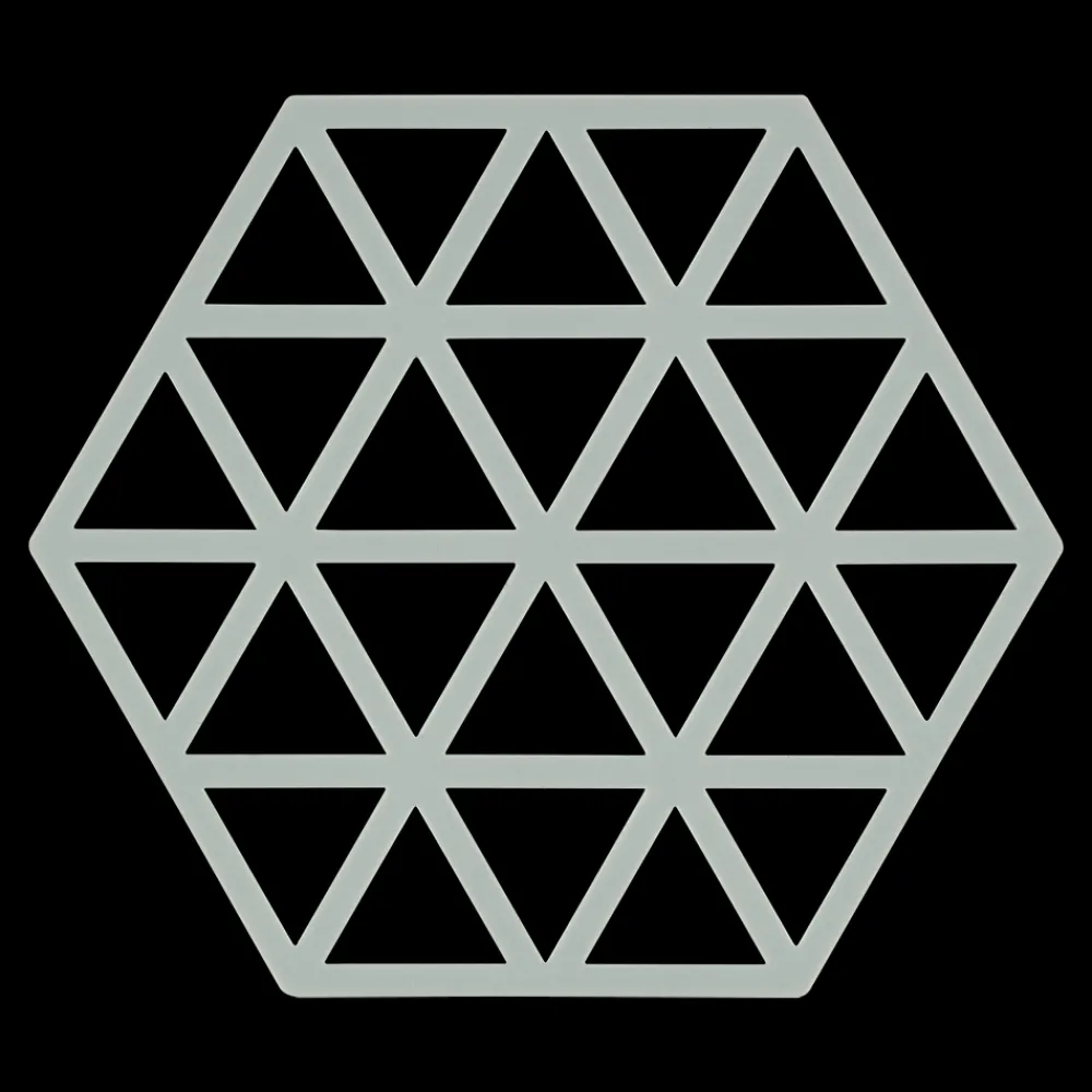 Triangles bordskånerne i silikone er så grafisk dekorative, at de indbyder til at lægge en flok ud i hele bordets længde uden at stille noget på dem. De er varmebestandige op til 250 °C og kan vaskes i opvaskemaskine. 16 x 14 x 0,9 cm.