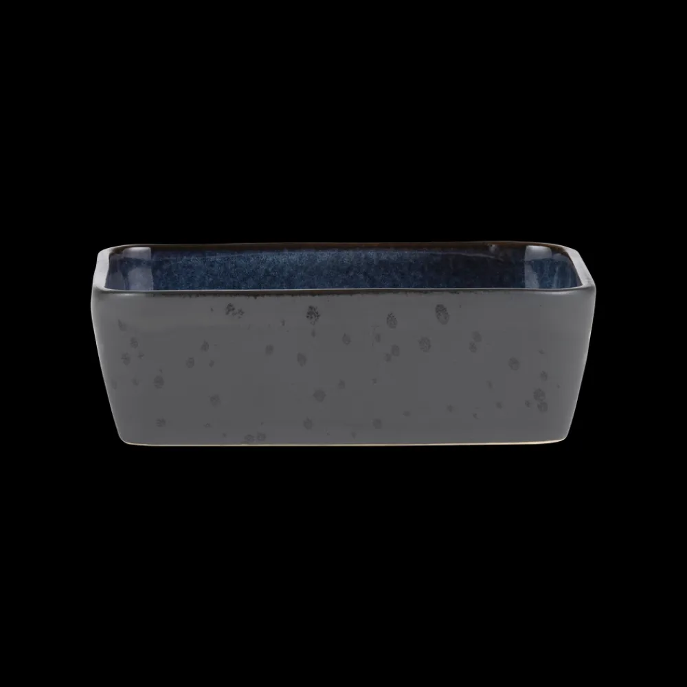BITZ’ rektangulære fad i mat, sort stentøj med blank mørkeblå glasur på indersiden måler 21 x 28 cm og er 8 cm højt. Det flotte fad fås i to størrelser og i flere fantastiske farvestillinger med en unik, reaktiv glasur, der fremhæver stentøjets glød.