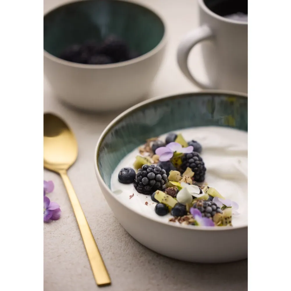 Kombinationen af den matte yderside og den reaktive, blanke, farvede glasur på indersiden gør hver enkelt produkt unikt, og du finder ikke to, der har helt samme udtryk. Velegnet til maskinopvask, mikroovn, fryser ned til minus 18 grader og ovn op til 220 grader.